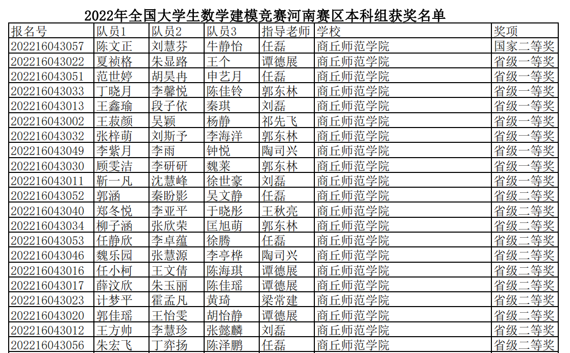 近日,2022年全国老员工数学建模竞赛(CUMCM)成绩揭晓,beats365中文官网获全国二等奖1项、河南省一等奖9项、河南省二等奖11项,河南省三等奖14项。本届大赛有来自全国及英国、马来西亚等国家的1606所院校/校区、54257队(本科组49424队、专科组4833队)、超过16万人报名参赛。