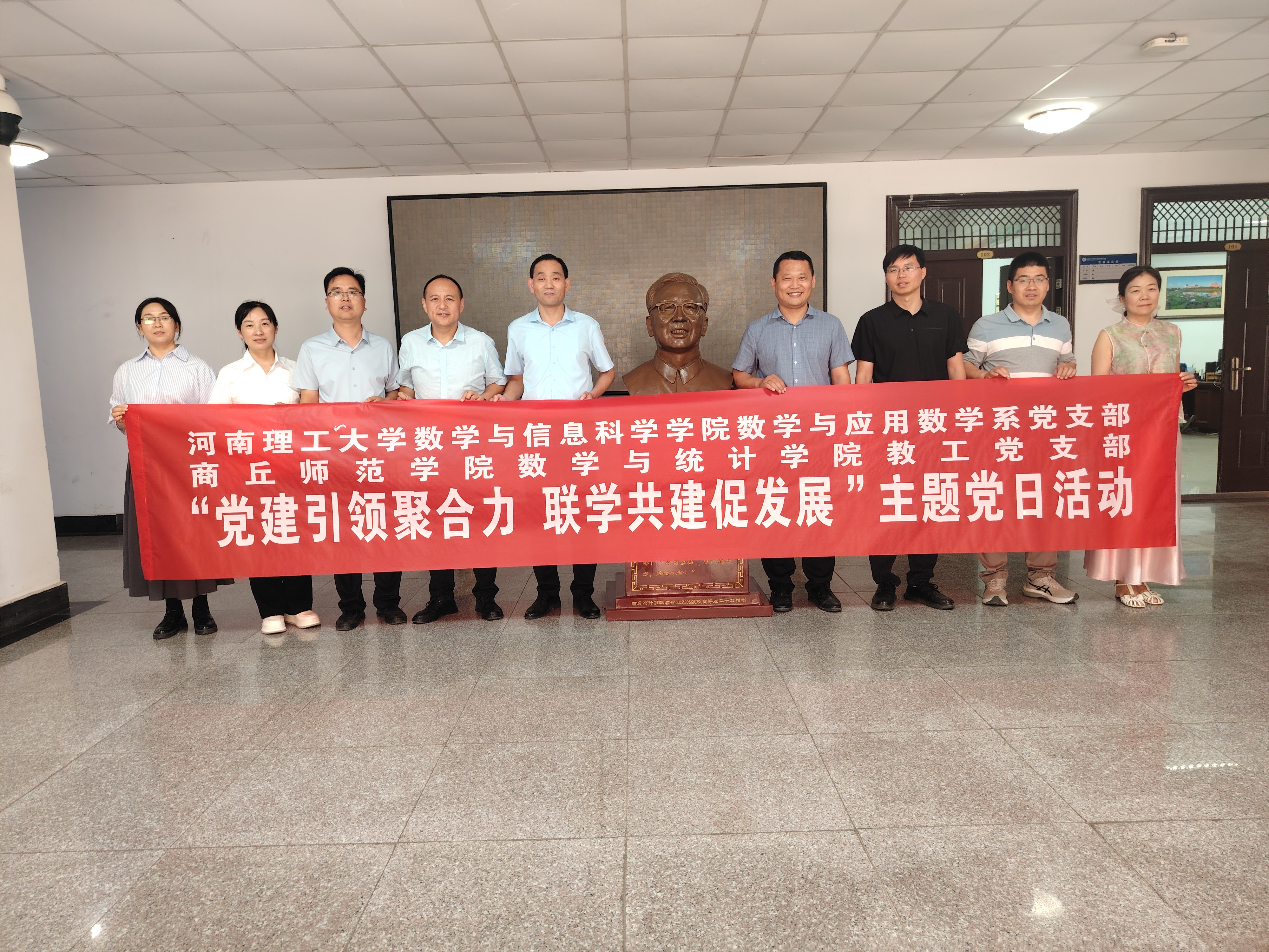 期间,我们与河南理工大学数学与信息科学公司数学与应用数学系党支部开展了“党建引领聚合力 联学共建促发展”主题党日活动。两个支部党员同志共同瞻仰了人民数学家华罗庚先生铜像,参观了华罗庚科学事业成就展,学习了华罗庚先生矢志不渝、“70岁入党终不悔”的崇高追求和光辉事迹。通过参观图片展、学习交流,与会人员对华罗庚先生的生平事迹、科学成就、高尚情操有了更深入的了解,同时也激发了在数学领域追求卓越、勇于创新的热情和动力。大家还共同参观了该院数学文化长廊、党建文化长廊、党建荣誉墙、教工之家、数学与应用数学系党支部活动室等。