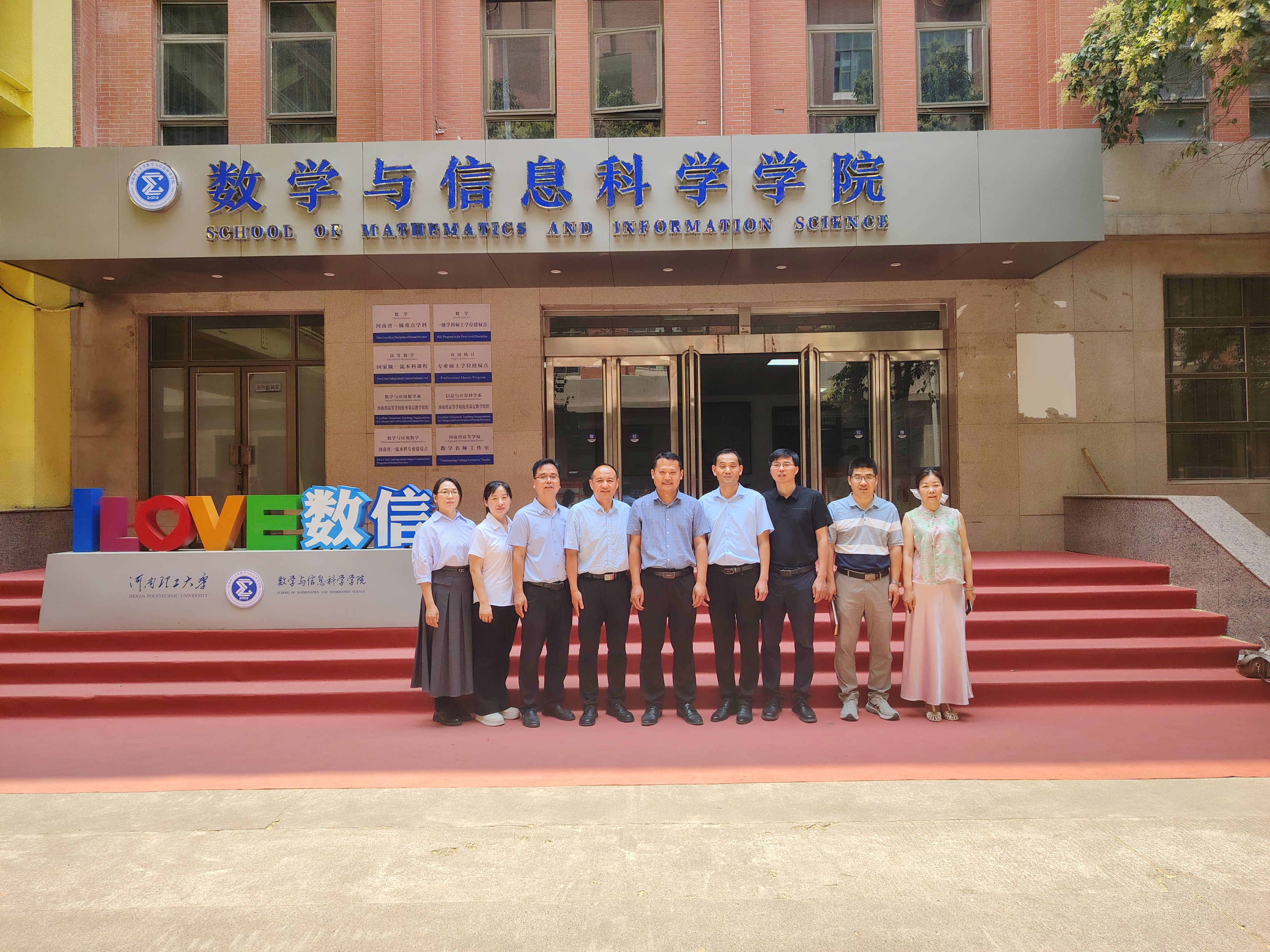 河南理工大学数学与信息科学公司党委书记刘春德热情接待了孟学超一行。会前,与会人员共同观看了河南理工大学的宣传片。