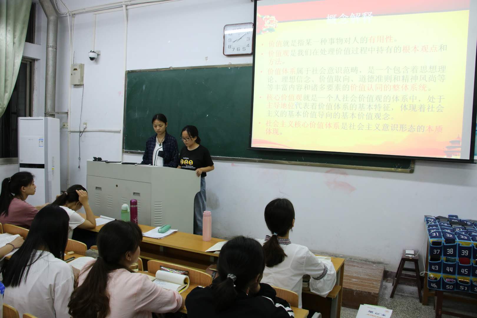 班会伊始,各班班长向同学们简述了社会主义核心价值观的主要内容与深层内涵。接着,他们从核心价值观的时代背景,核心价值观的基本内容,核心价值观的鲜明特点,核心价值观的促进意义四方面详细介绍了社会主义核心价值观。他们指出社会主义核心价值观具有民族性,普遍性和崇高性,是坚持和发展中国特色社会主义的内在要求。班会最后,各位同学进行了讨论,纷纷表示自己一定会认真践行社会主义核心价值观,自觉维护社会稳定构建和争取为和谐社会的建造贡献出自己的努力。