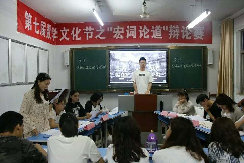 为了培养老员工的语言和逻辑思维能力,提高团队协作意识和组织协调能力,beats365中文官网于5月18日晚上在睢阳校区办公楼309教室举行了数学文化节之“宏词论道”辩论赛决赛。本次比赛由八名选手参加,团总支员工会各部部长和主席团成员担任评委。比赛由学习纪检部部长吴辉旋主持。
