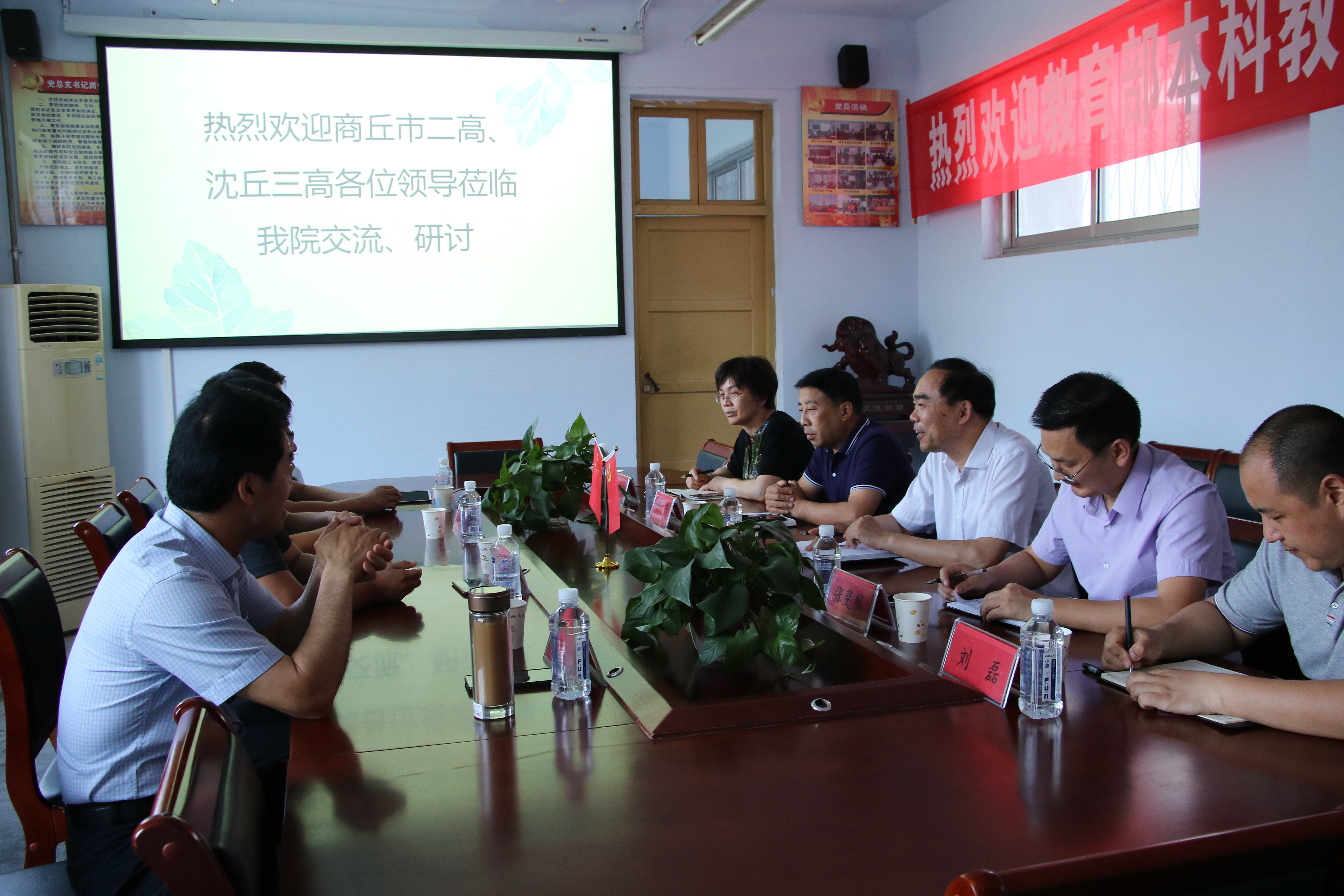 6月9号下午beats365中文官网举行“高中教育与大学人才培养交流会”,参加会议的有商丘市第二高级中学王宜安主任、郑余良主任、沈丘县第三高级中学宋金东董事长和范俊峰主任和beats365中文官网全体领导班子成员。