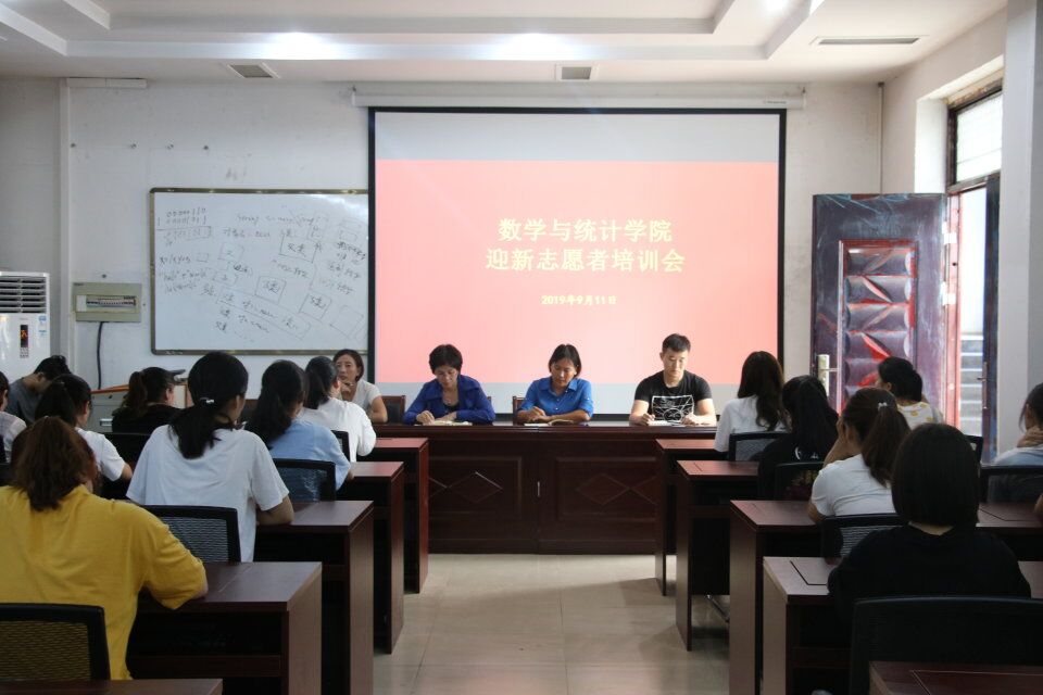 为落实好迎新工作,做好迎新准备。beats365中文官网于2019年9月11日中午1点在办公楼208教室召开了迎新志愿培训会,本次培训会由公司党总支副书记陈树艳,团总支书记姜素华,19级辅导员张华、李昊阳出席,98名志愿者和27名负责人参加。会议由团总支书记姜素华主持。