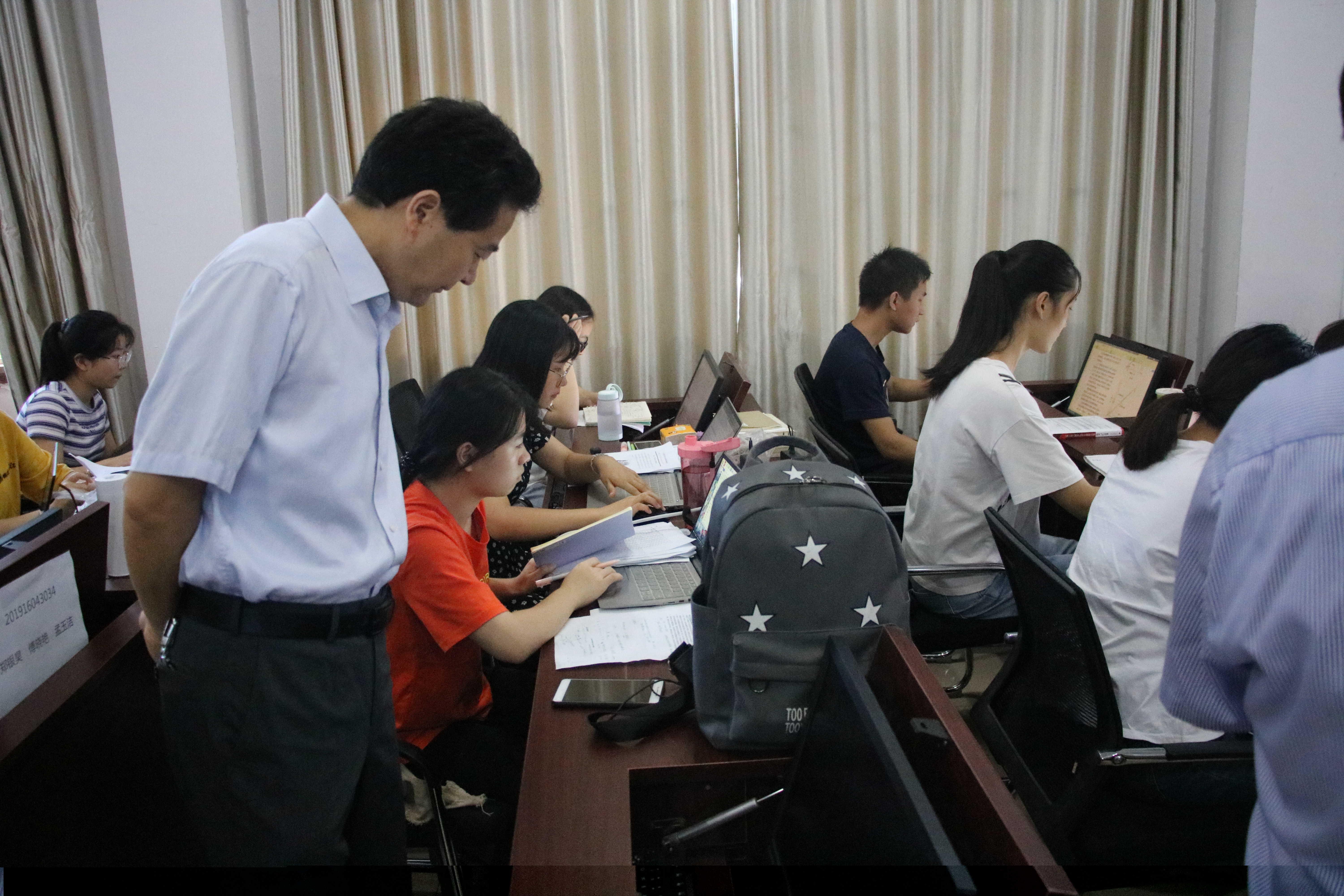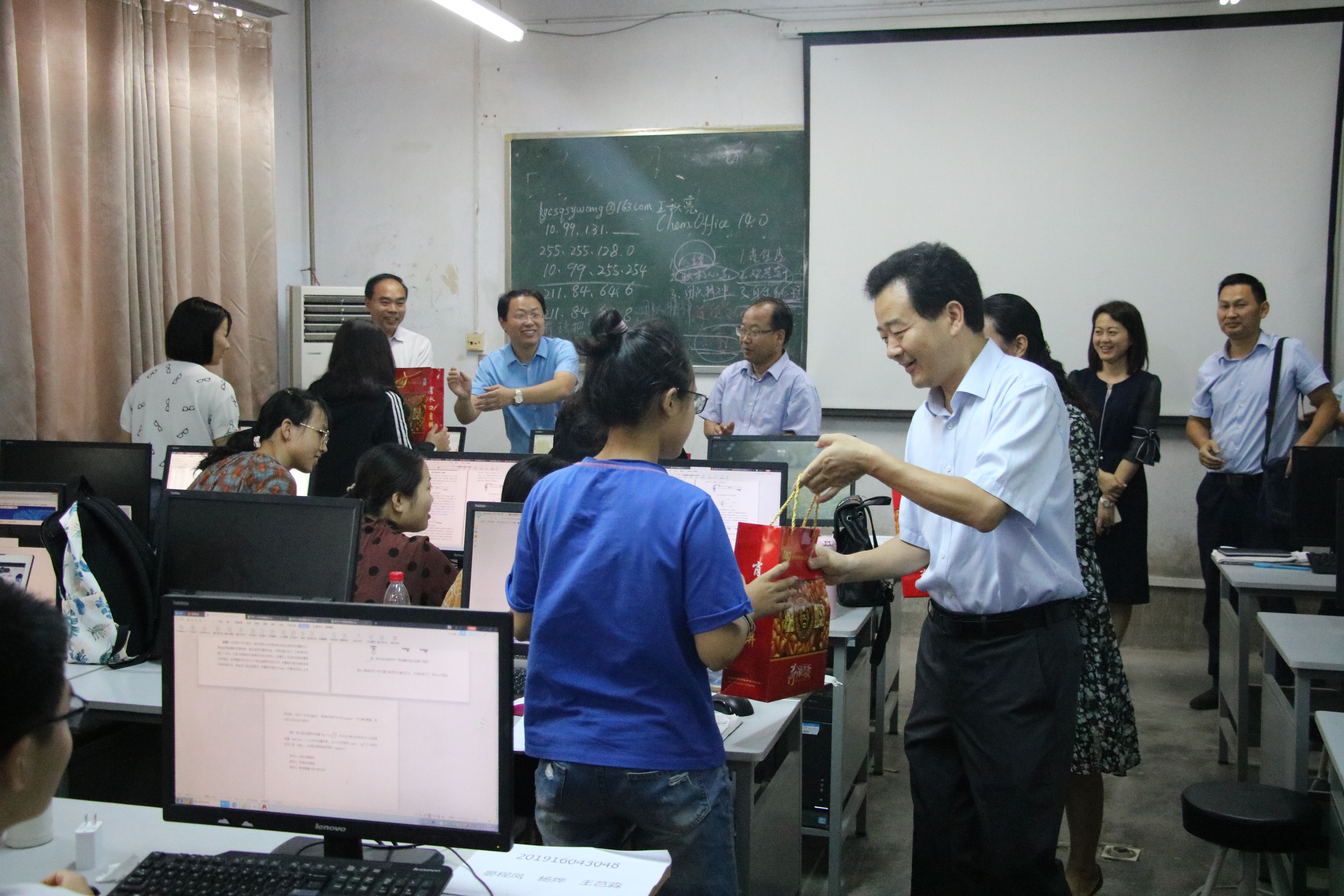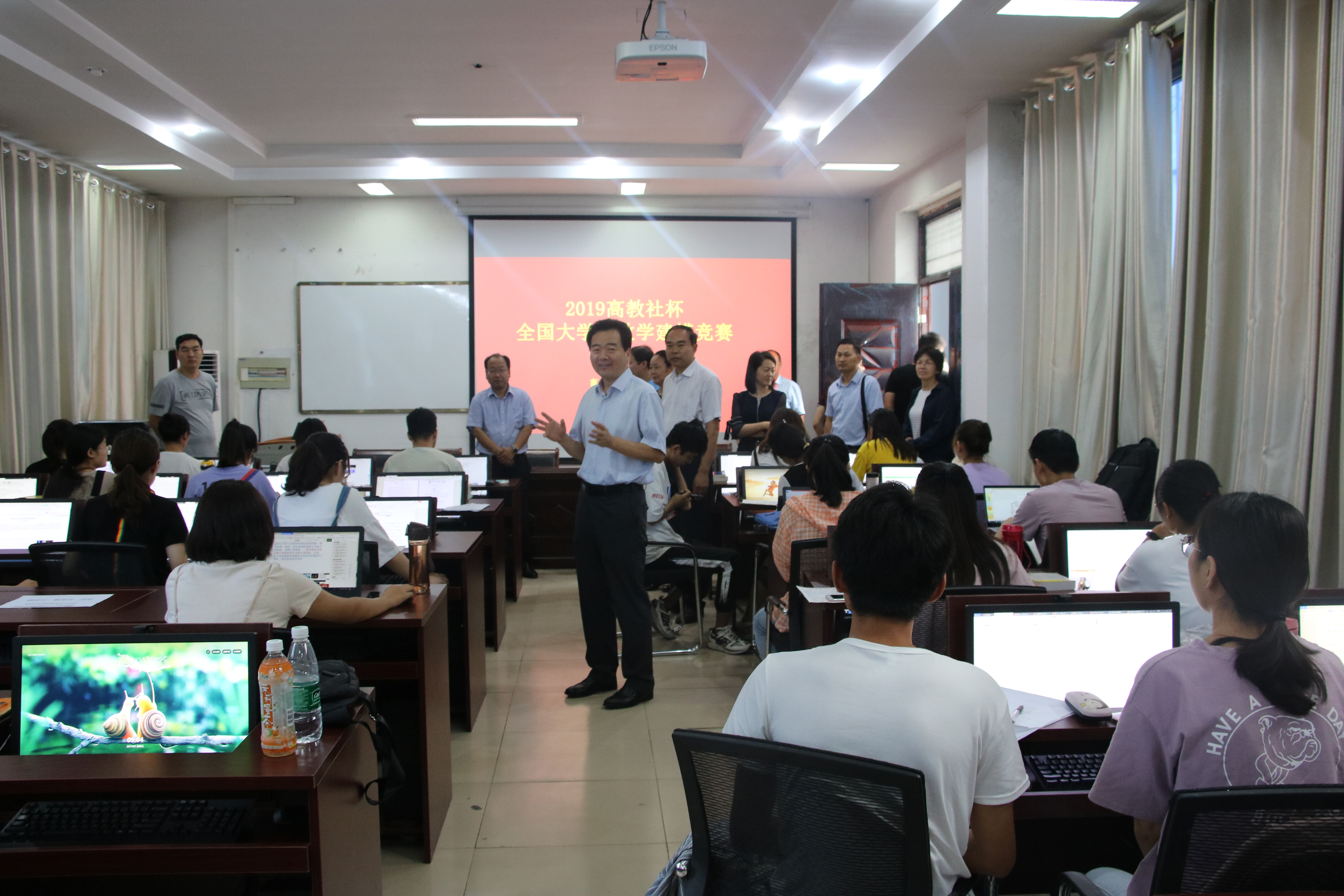 在竞赛现场,校领导与参赛选手进行了亲切交流,询问了竞赛进展情况,勉励大家要沉着应对,发挥自己的聪明才智和团队合作精神,奋力拼搏,赛出水平,力争取得优异成绩,为校争光。