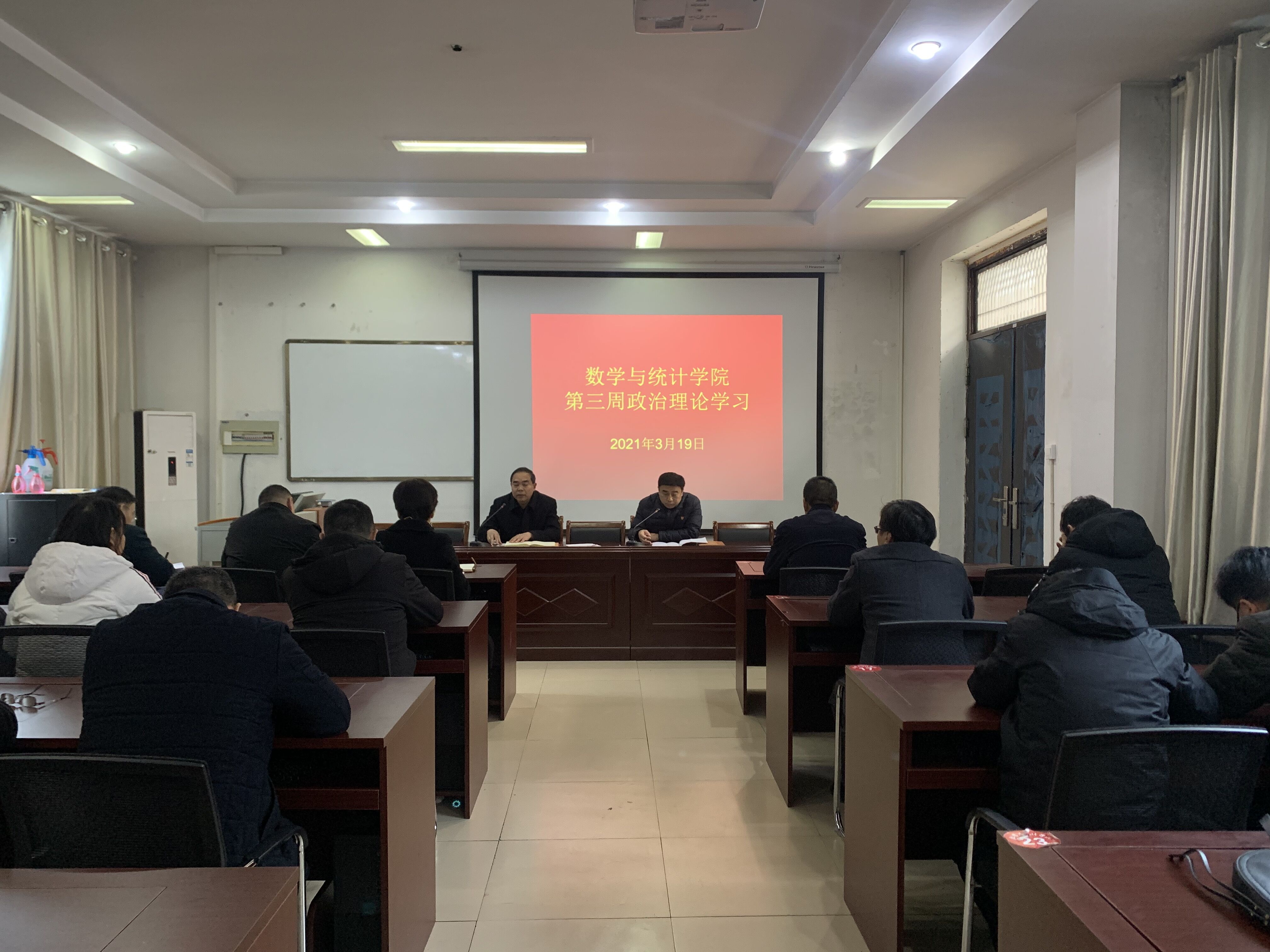 2021年3月19日,beats365中文官网在数学楼综合会议室召开第三周政治理论学习会议,公司领导班子、全体教职工参加此次会议。