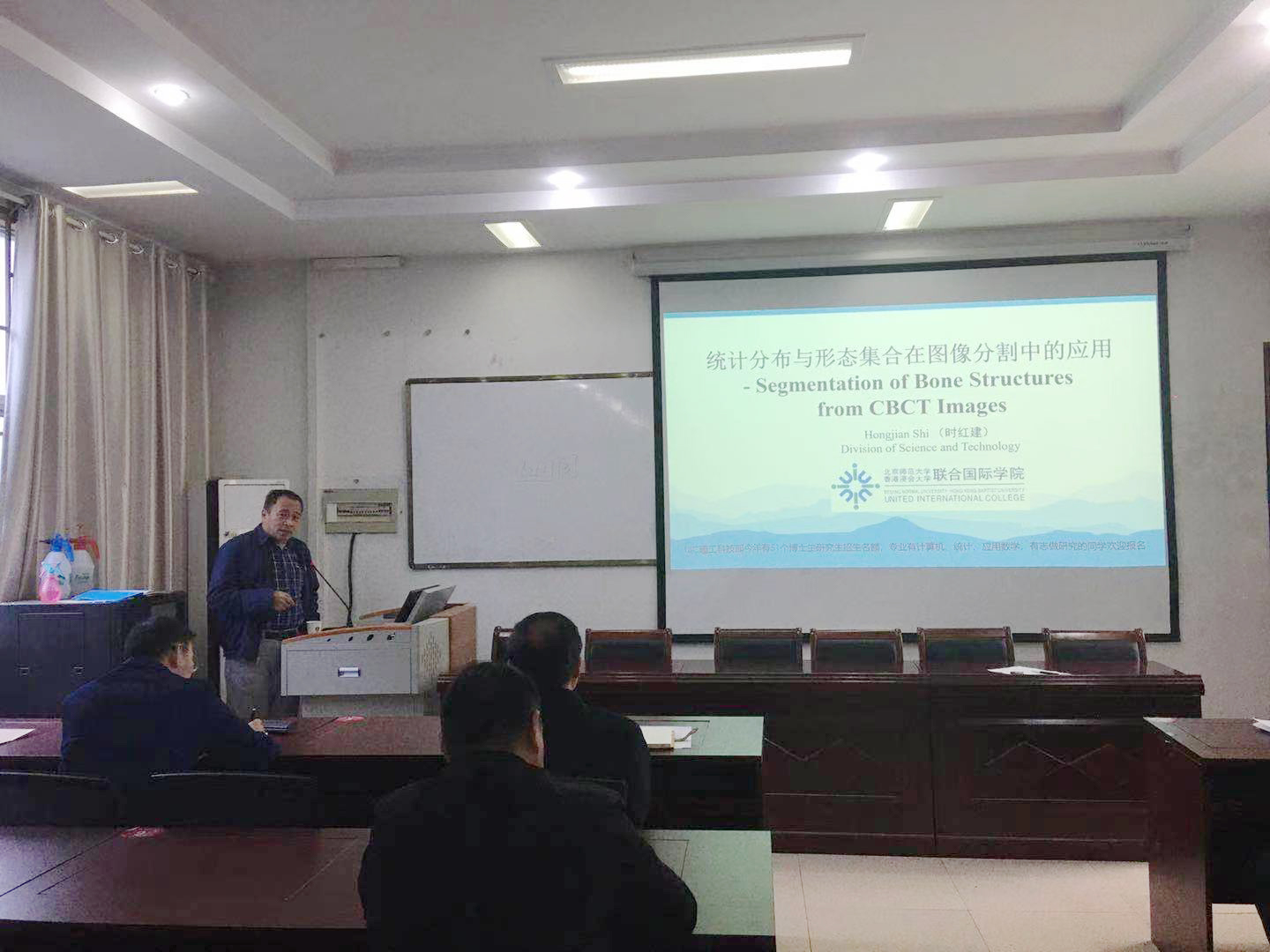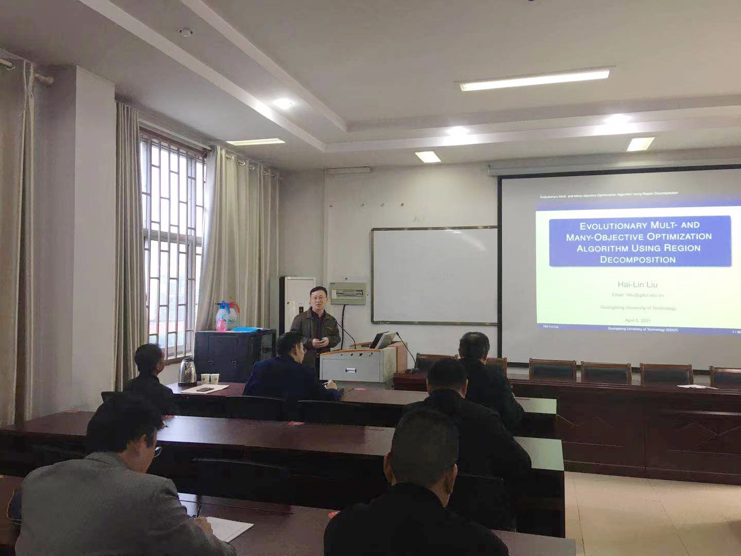 4月5日下午,应公司beats365中文官网邀请,广东工业大学博士生导师刘海林教授、北京师范大学-香港浸会大学博士生导师时红建教授在beats365中文官网综合会议室分别做题为“基于区域分解的进化多目标和超多目标优化算法”和“统计分布与形态几何在图像分割中的应用”的学术报告。报告由beats365中文官网经理梁洪亮主持,beats365中文官网全体教师聆听了报告。