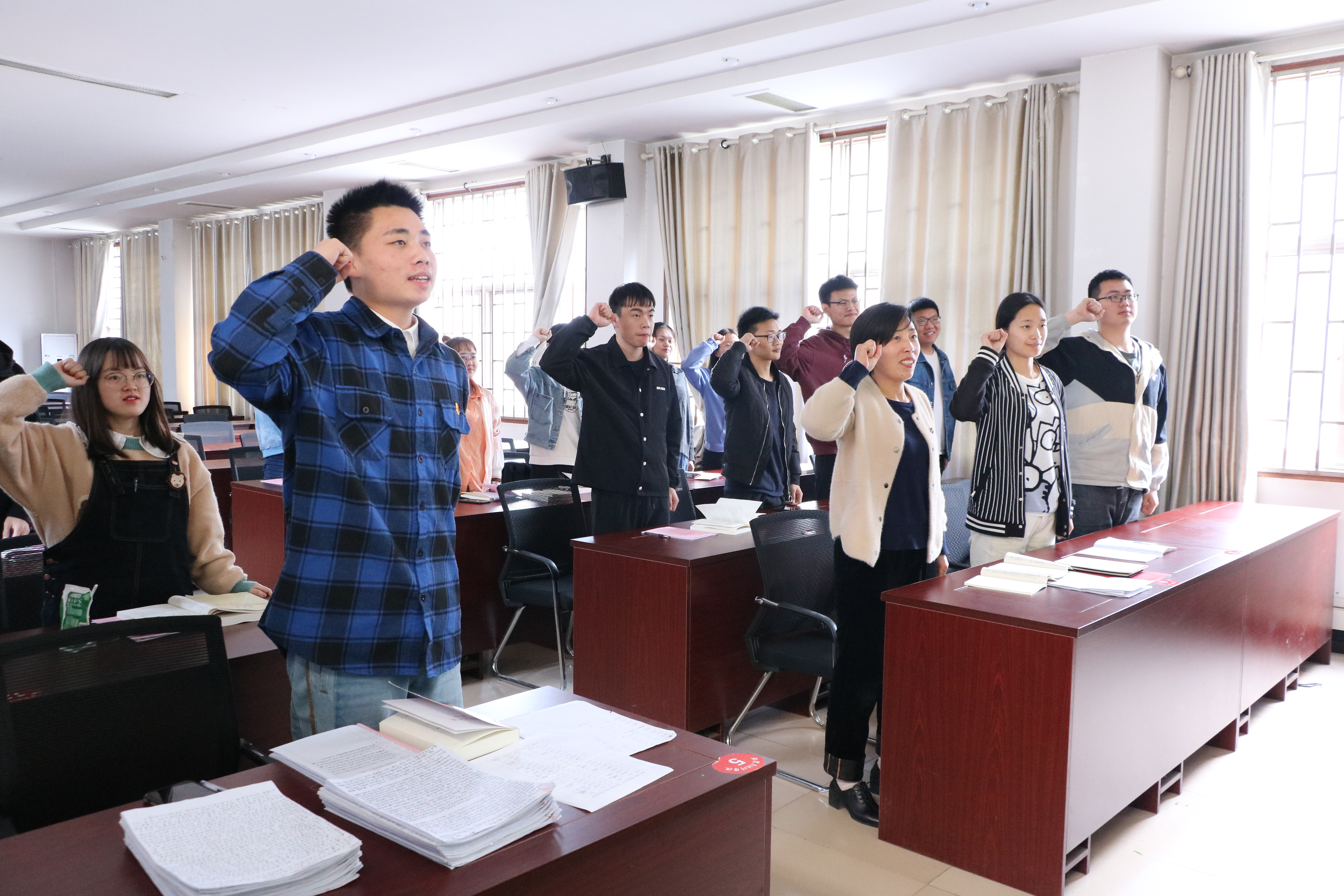 活动伊始,全体党员在姜素华老师的带领下起立宣读入党誓词。姜素华强调,今年正处在建党一百周年的重要时刻,党史学习教育,是党中央作出的一项重大决策部署,是当前一项极端重要的政治任务,全体党员要认真对待并积极学习。接着,姜素华带领大家开展了诗文朗诵会,通过诵读经典诗文的方式表达对革命先烈的追思、革命精神的传承和实现中国梦的热忱。最后,活动在《大会师》影片中圆满结束。