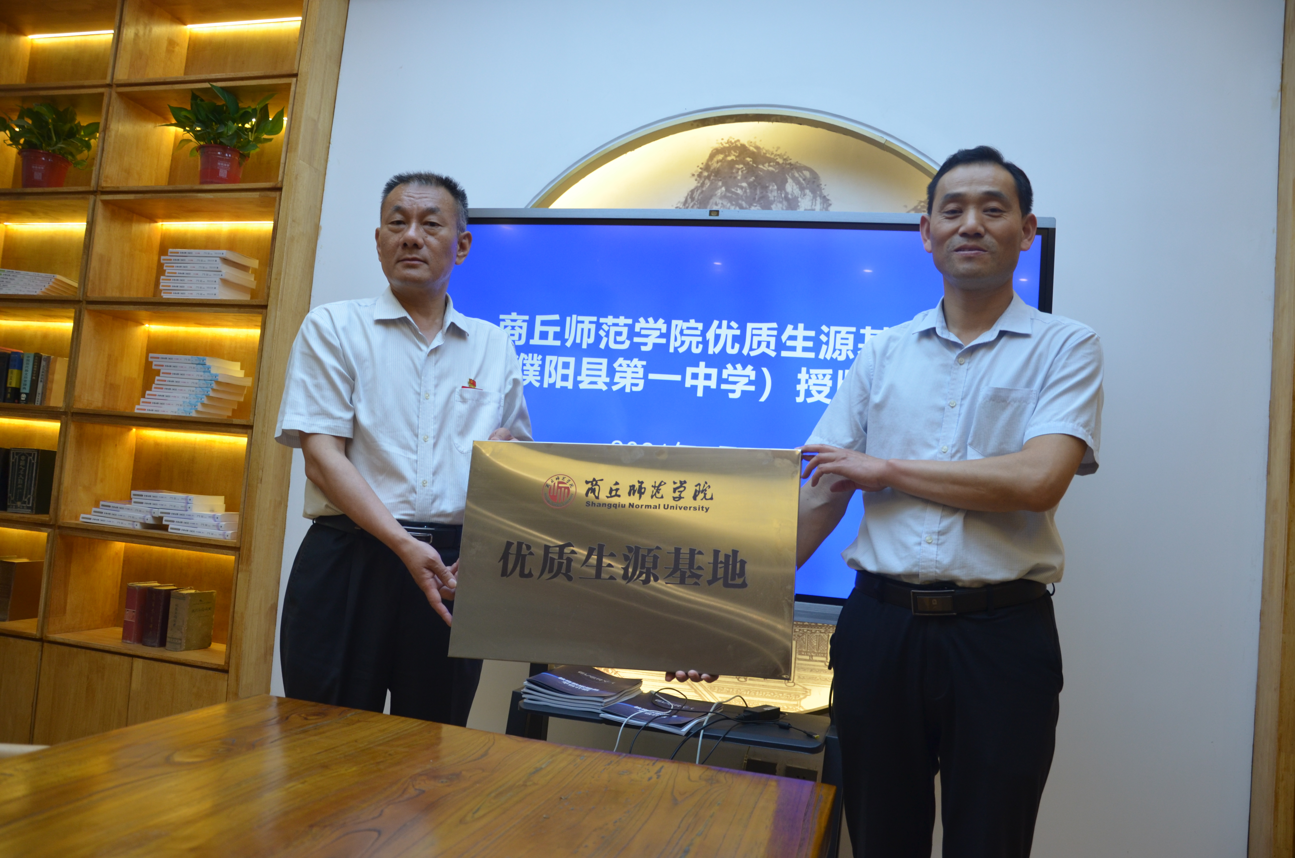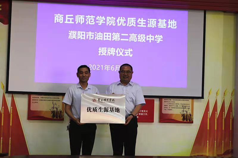 最后,孟学超代表公司分别和濮阳油田第二高级中学、濮阳县第一中学签订了优质生源基地合作协议书,授予濮阳油田第二高级中学、濮阳县第一中学优质生源基地牌匾并合影留念。