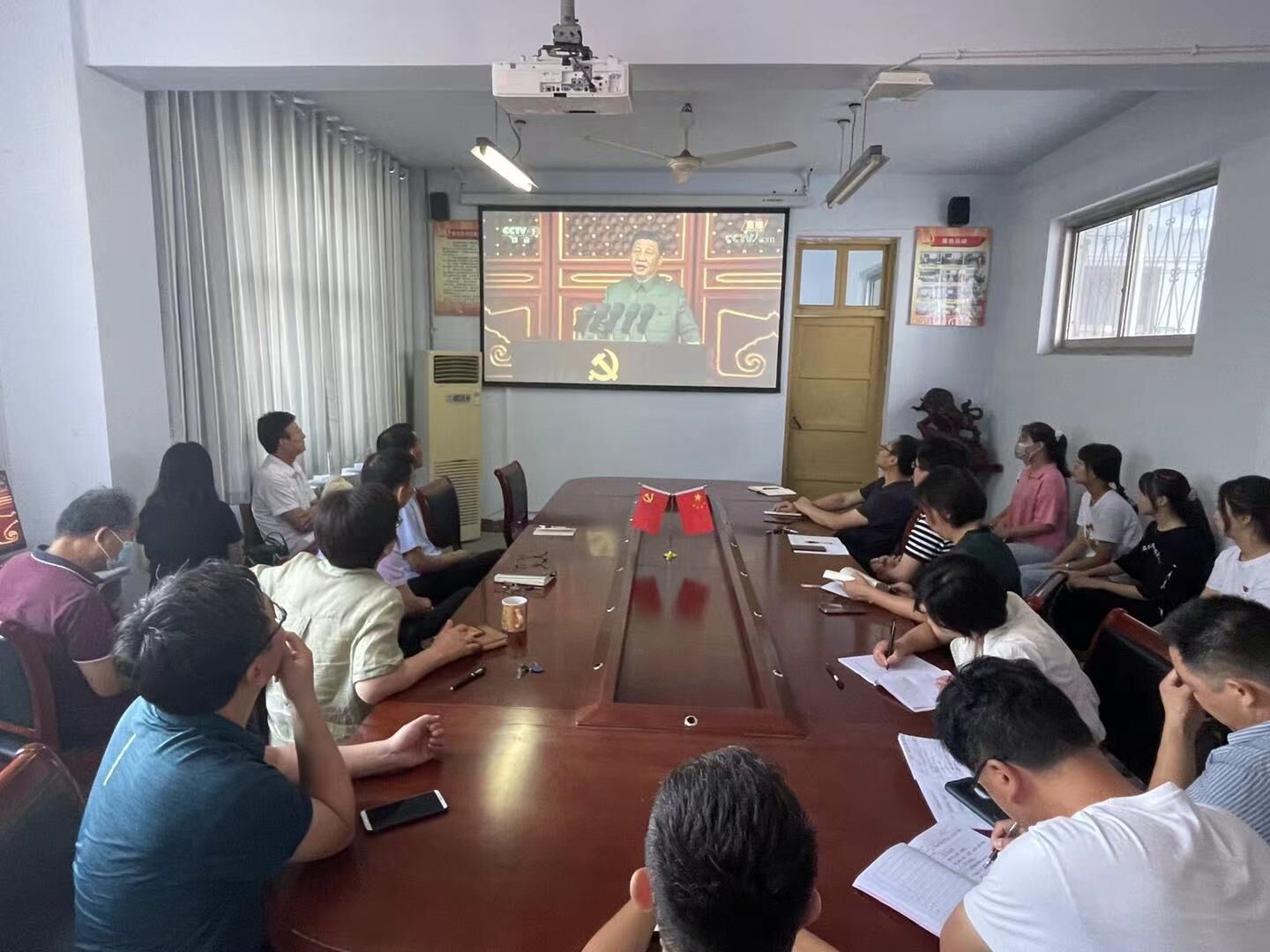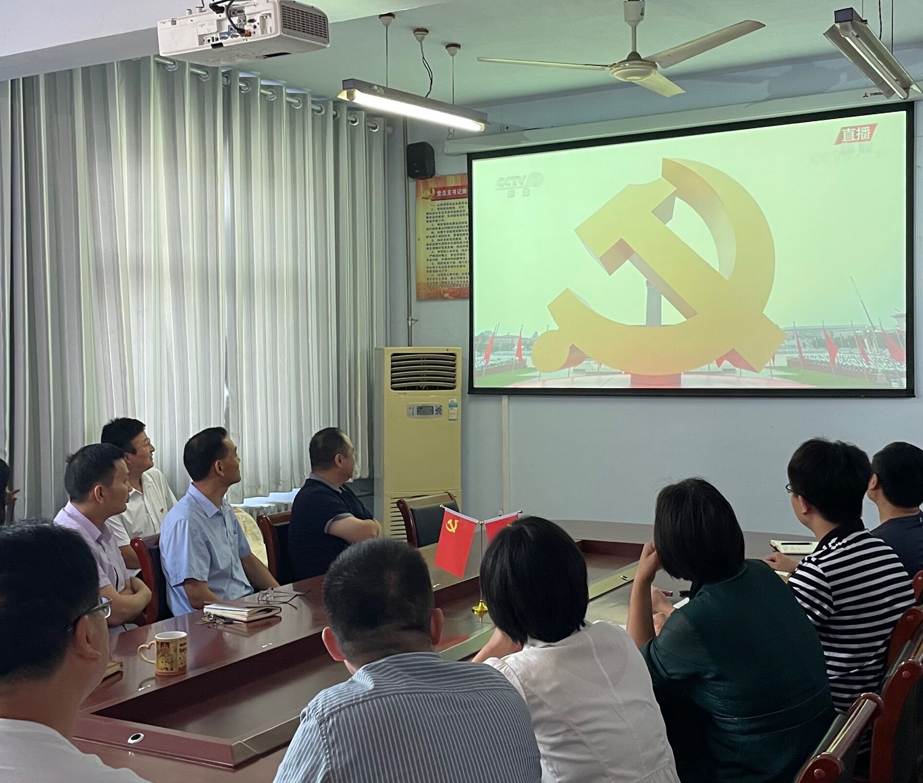 2021年7月1日上午公司党委组织师生党员代表在数学楼党建活动室观看“庆祝中国共产党成立100周年大会”,公司领导班子、教职工党员代表、员工党员代表参加了此次活动。