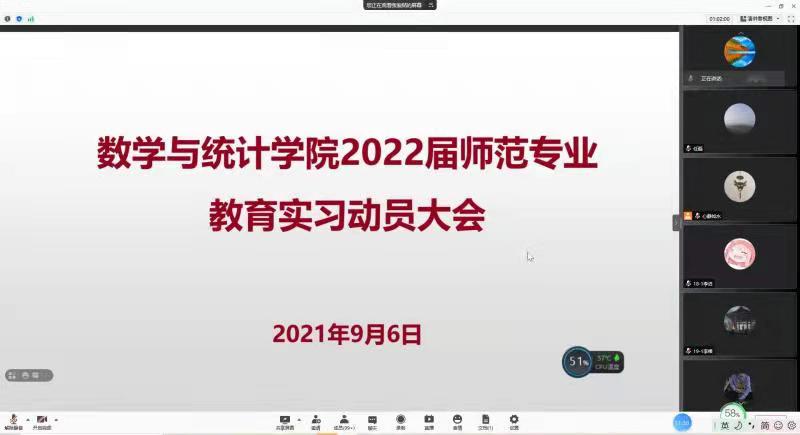 根据人才培养方案和教学计划的安排,为更好地开展师范专业教育实习工作,引导师范生进一步明确实习的内容和要求,9月6日,公司召开2022届师范专业教育实习动员大会,因为受疫情影响,动员大会以腾讯会议的方式进行。公司党委书记孟学超、经理张斐然、副书记陈树艳、副经理刘磊和2018级数学与应用数学专业、2019级数学教育专业全体员工以及指导老师参加云会议,会议由陈树艳主持。