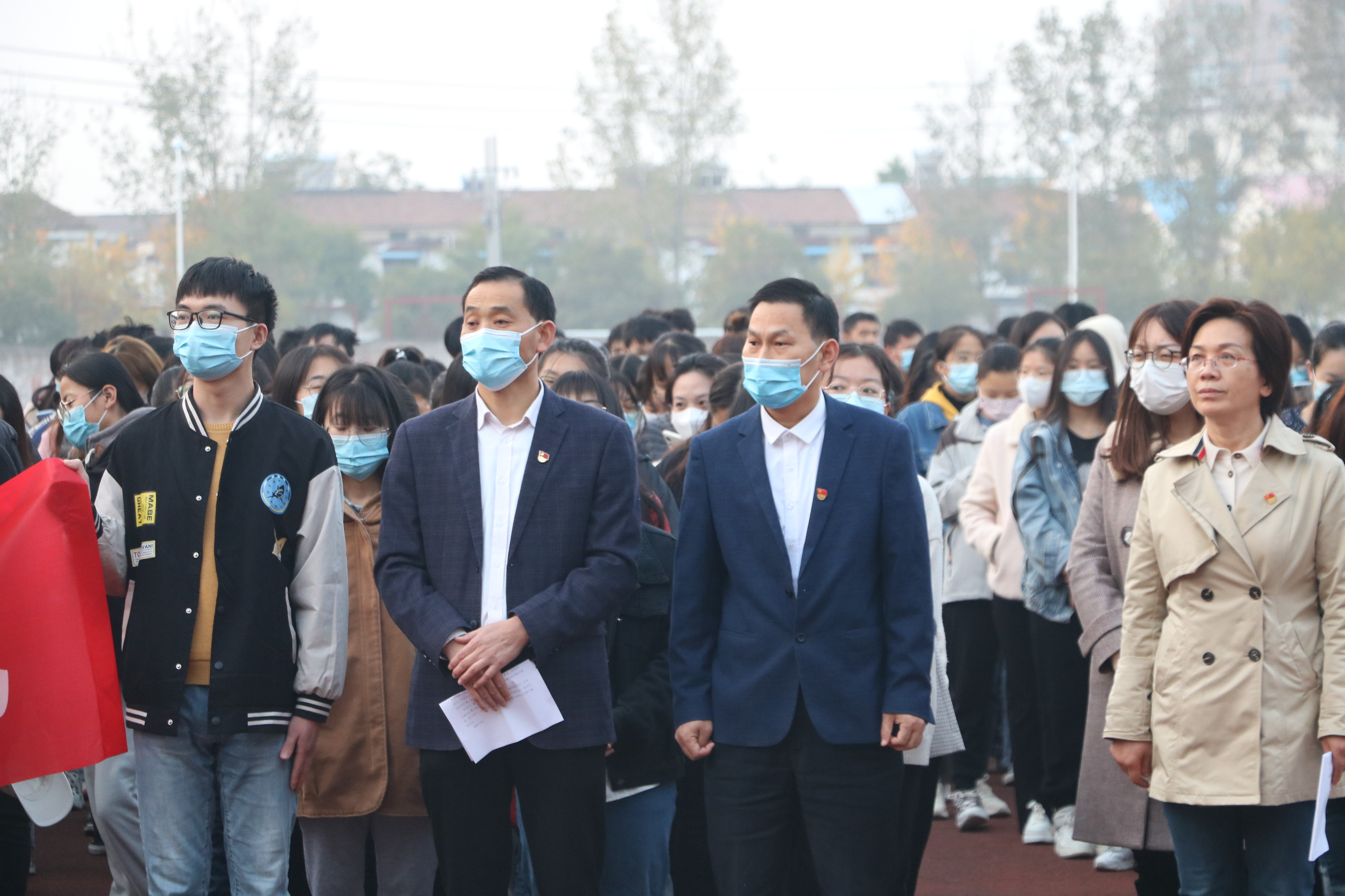 为深入学习贯彻习近平新时代中国特色社会主义思想,培养员工的爱国意识,beats365中文官网于2021年10月25日在睢阳校区体育场举行了“奋斗百年路,启航新征程”的升旗仪式。本次升旗仪式由公司党委副书记陈树艳主持,公司党政领导、各年级辅导员及班主任代表出席,beats365中文官网全体员工参加。