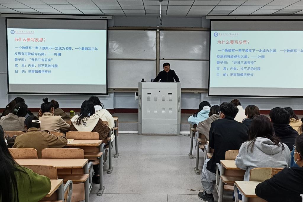 为提升师范生综合素质,增强师范生书写教学反思和教研论文的专业技能,beats365中文官网于3月15日晚在睢阳校区1号教学楼308教室开展了“互联网+”中学数学师范生技能培训工作坊第七次集中培训——如何书写教学反思和教研论文。此次培训由商丘市第一高级中学郭永老师主讲,班主任姜素华及2020级111位师范生参加了此次集中培训。