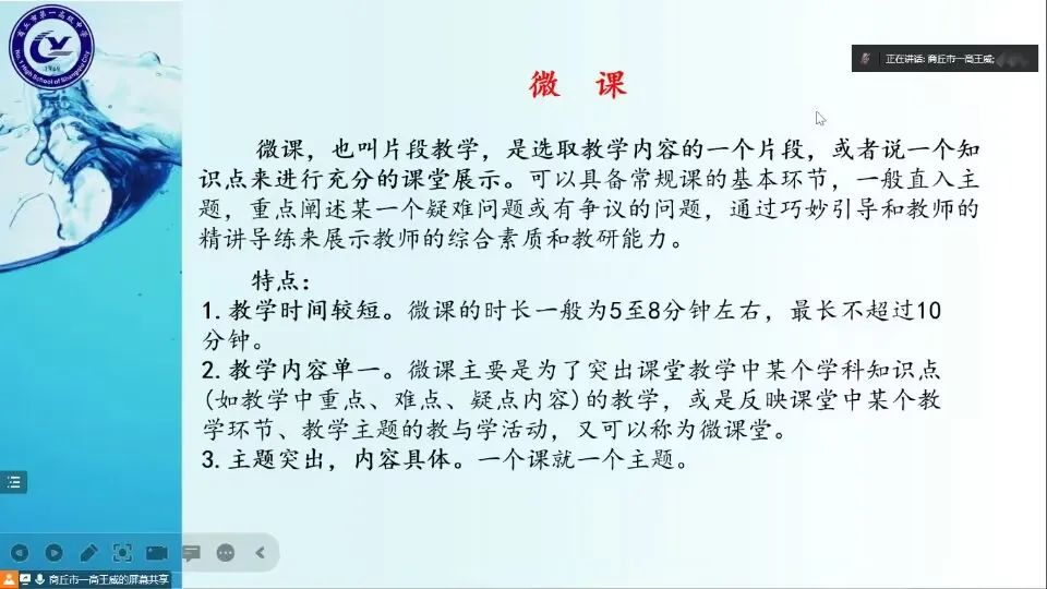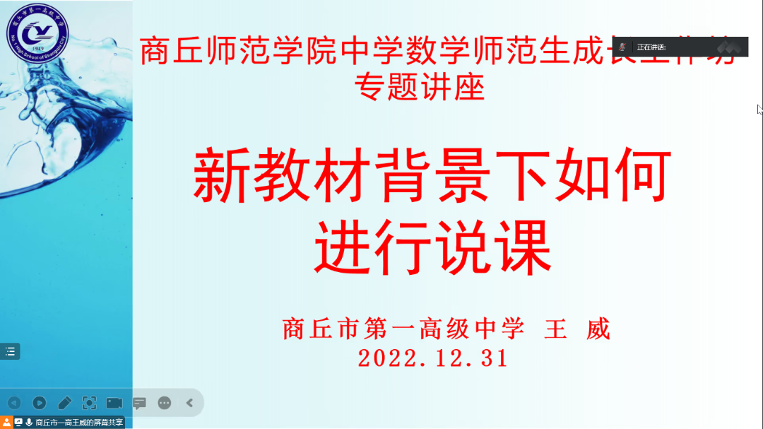 为培养师范生说课技能,提高师范生综合素质和专业技能,beats365中文官网于12月31日晚七点在腾讯会议开展了“互联网+”中学数学师范生技能培训工作坊第五次集中培训——新教材背景下如何进行说课。此次培训由商丘市第一高级中学王威老师主讲,中学数学工作坊11位坊主,2020级辅导员姜素华以及2020级111位师范生参加了此次集中培训。