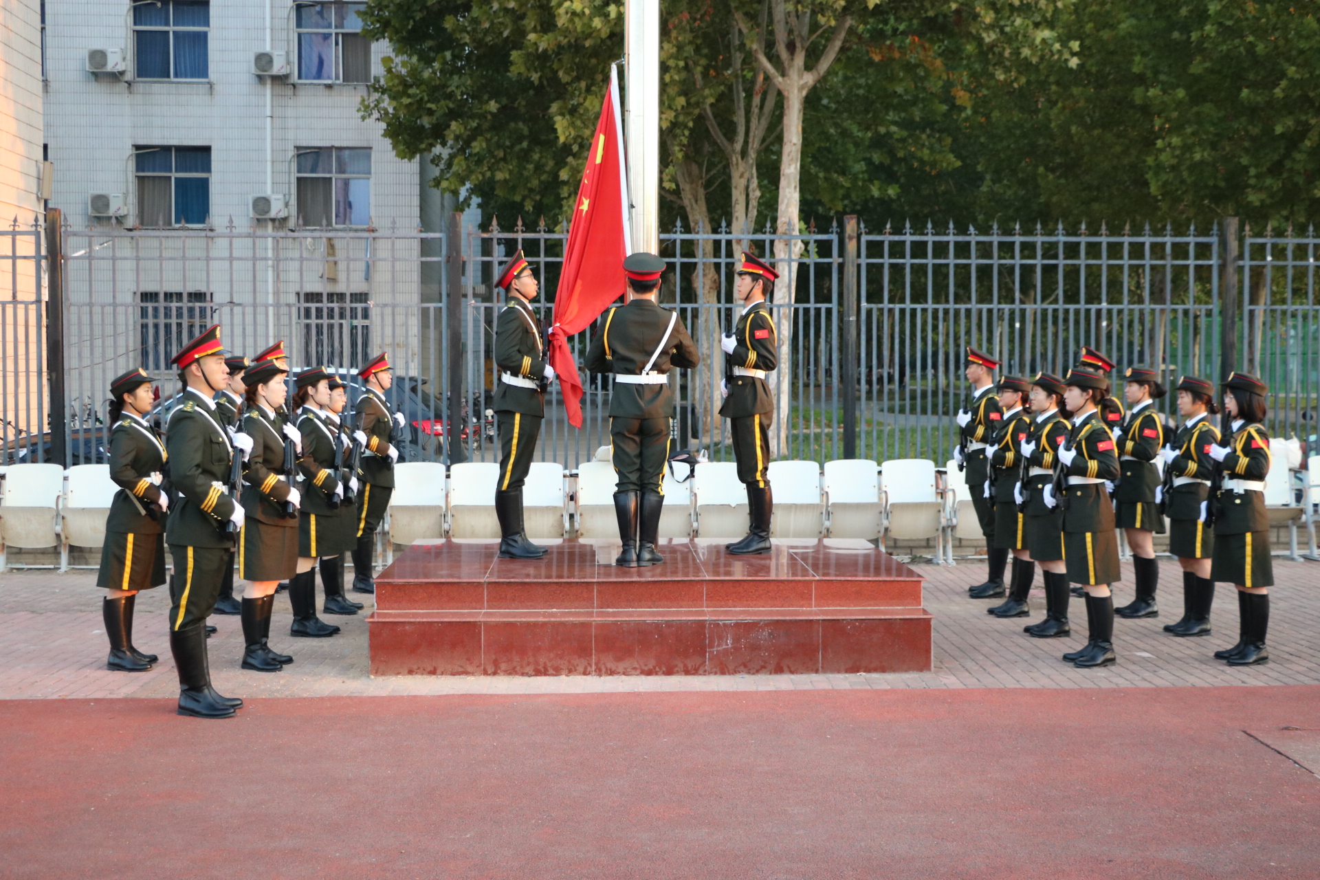 金秋十月,山河壮美。为进一步培养老员工的爱国意识和爱国主义情怀,beats365中文官网于10月23日上午在睢阳校区体育场开展“厚植家国情怀,传承红色精神”主题升旗仪式。本次升旗仪式由学工办主任李昊阳主持,公司领导、全体辅导员和班主任出席,2023级全体员工参加。