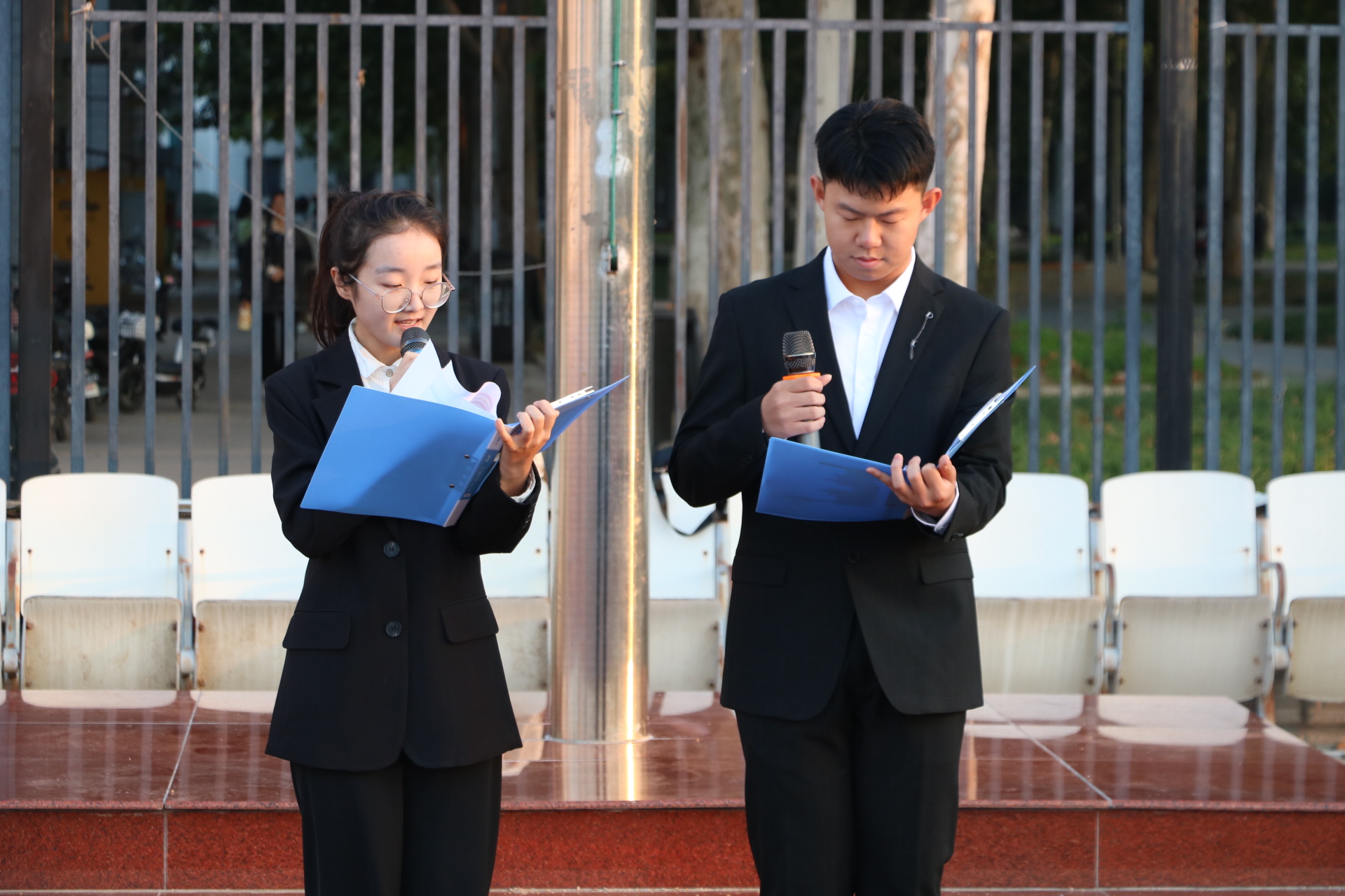 在升旗仪式结束后,公司组织开展了主题党日活动,公司教师党员、入党积极分子代表参与了此次活动。员工代表程致远、吴越进行国旗下的朗诵——《时代精神茂风华,传承精神谱新章》。两位同学精神饱满、激情昂扬,声情并茂地回顾了党的光辉历程和丰功伟绩,赞颂了中国共产党团结带领中国人民取得的历史性成就,鼓励同学们踔厉奋发,以蓬勃青春力量,挥写青春诗行,建设万里河山。