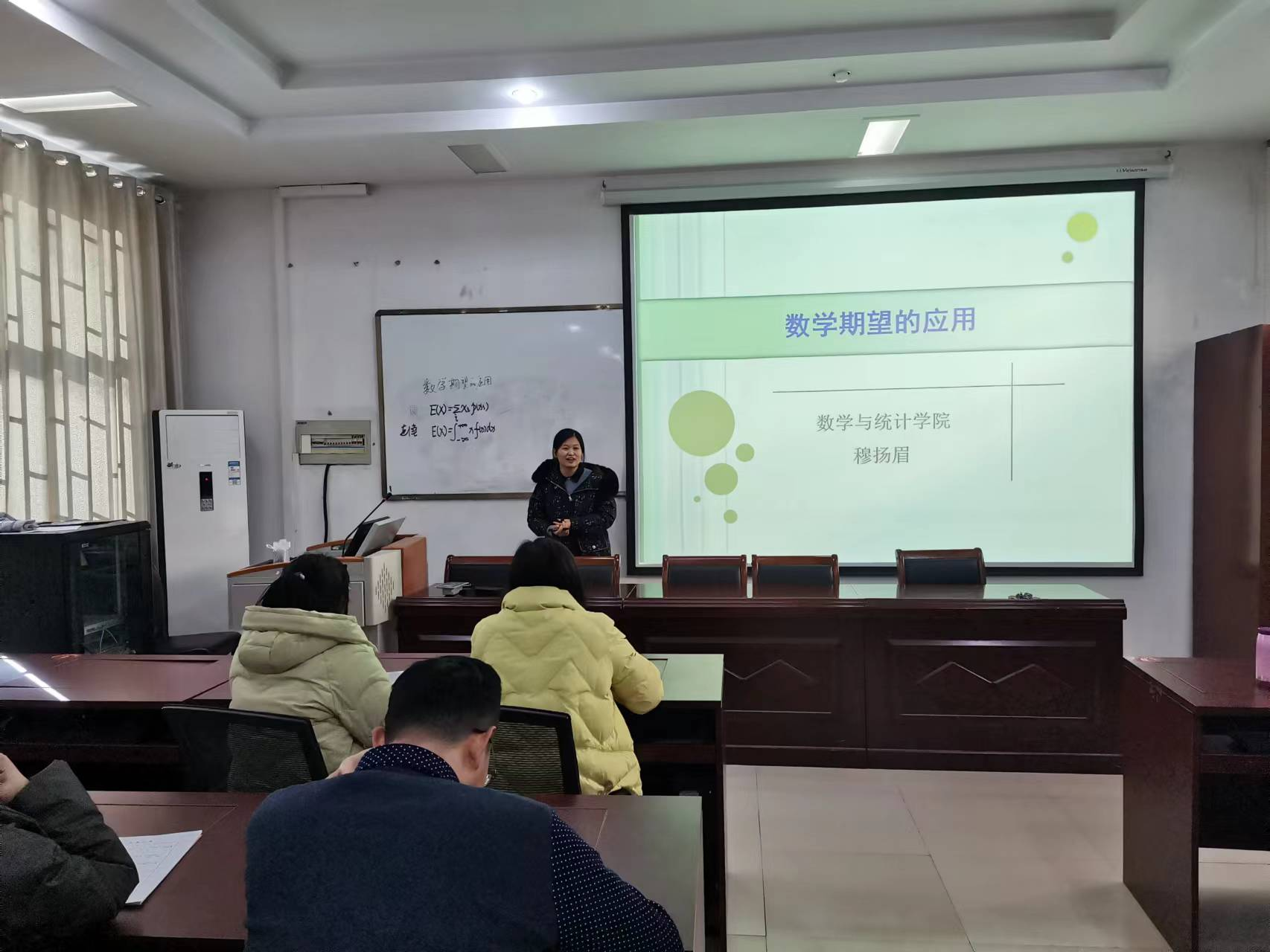 为进一步加强新进教师对课程思政的理解,使他们在授课中更好地实施课程思政,实现知识传授、能力培养、价值塑造三位一体的教学目标,金融数学系于11月17日邀请穆扬眉老师开展以《数学期望的应用》为题的优秀课程思政案例分享展示活动。金融数学系全体教师参加了此次交流活动。