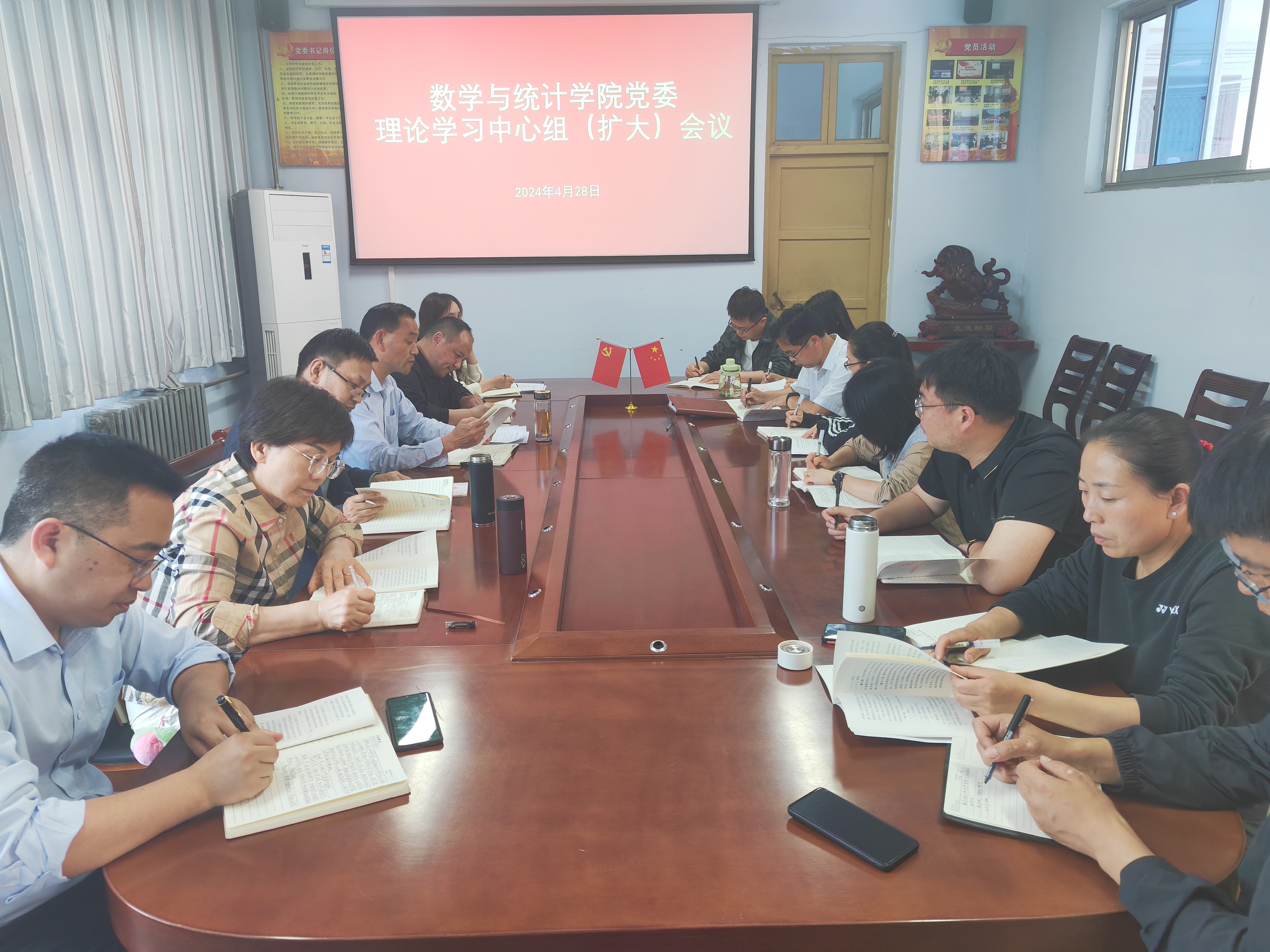4月28日下午,beats365中文官网在数学楼204党员活动室召开党委理论学习中心组(扩大)会议,公司党委委员、各支部书记、科级干部参加了会议。会议由党委书记孟学超主持。