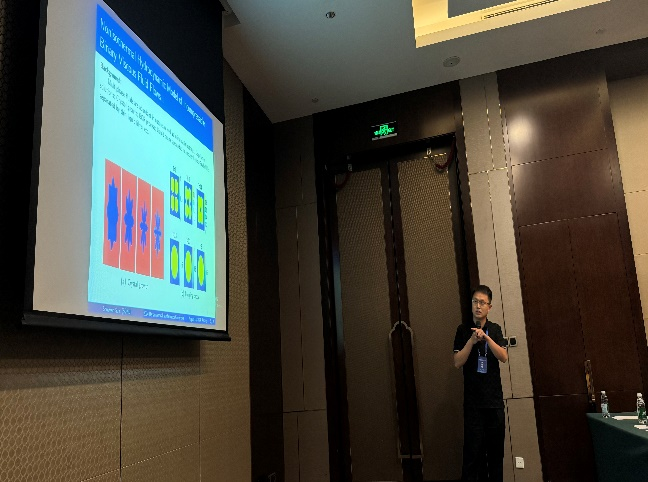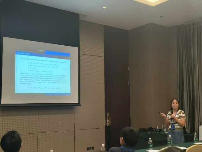 8月13日上午,大会举行开幕式并邀请了国内知名专家学者进行学术报告交流;13日下午,大会举行了多场学术专题报告会,张斐然主持了其中的3场报告;孙寿文博士做了“Entropy-production-rate-preserving algorithms for hydrodynamical simulations of binary fluids”专题报告,蒋凯歌博士做了“Φ(3)-调和映射的几何性质”专题报告,郭亚娜博士做了“Time decay rates of the micropolar equations with zero angular viscosity”专题报告,金世欣博士做了“时间尺度上近似Lagrange系统的近似Noether对称性”专题报告。四位博士的专题报告得到了与会专家学者的一致好评,并且会后进行了深入探讨和交流。