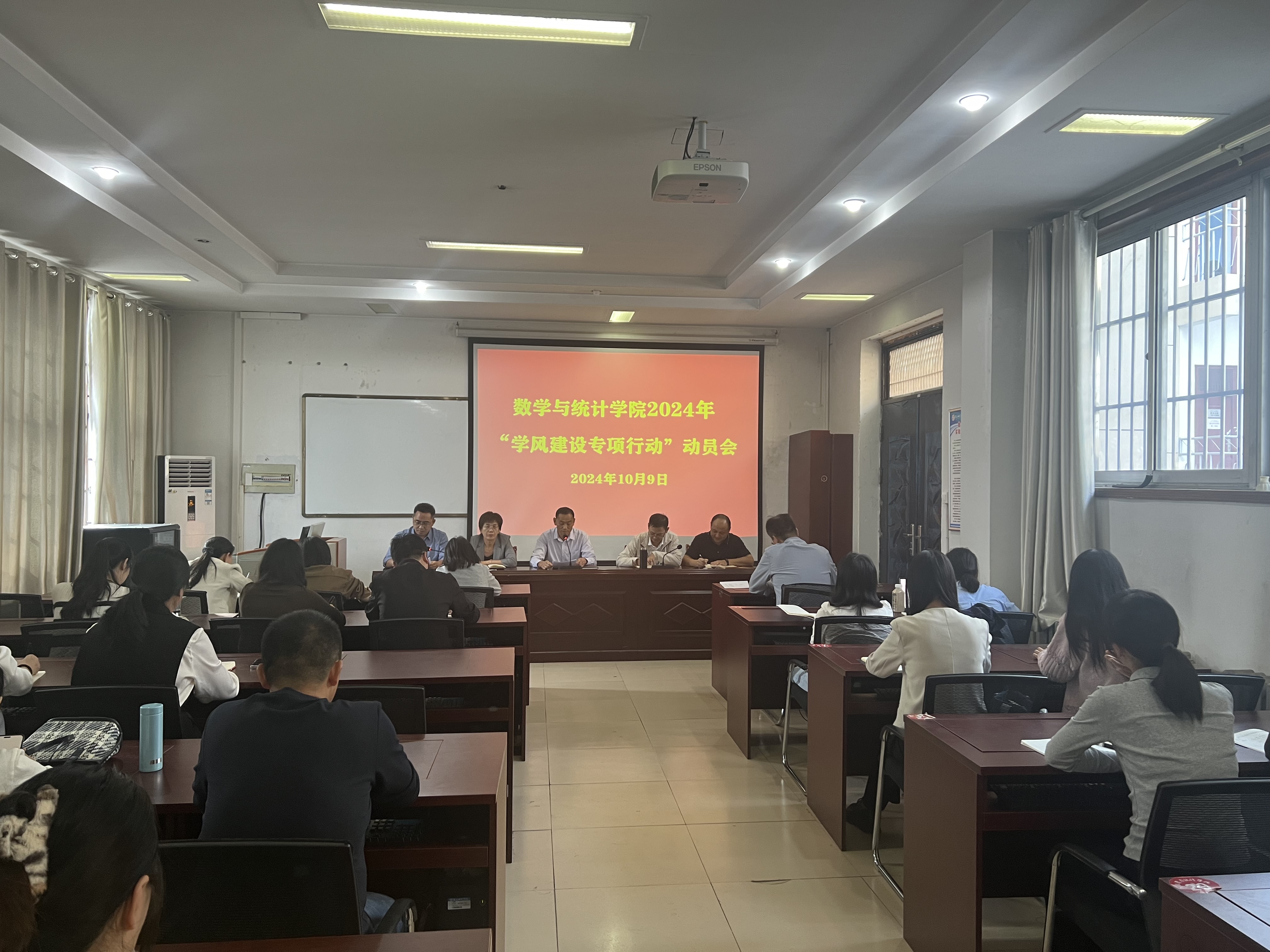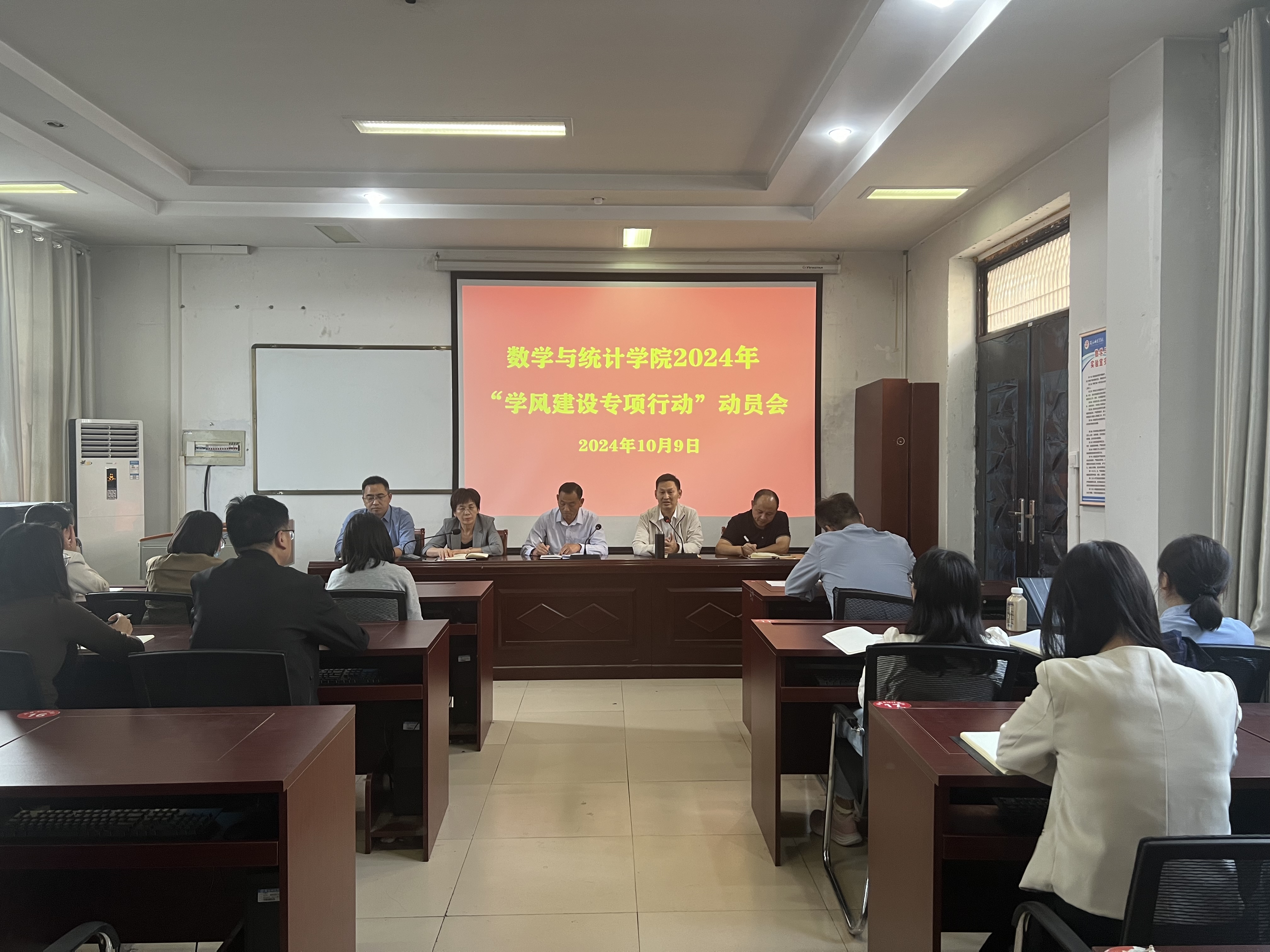 为扎实推进学风建设,培育优良学风,beats365中文官网于10月9日在数学楼208会议室召开2024年“学风建设专项行动”动员大会,会议由公司党委书记孟学超主持,公司领导班子、全体班主任、辅导员参加此次会议。