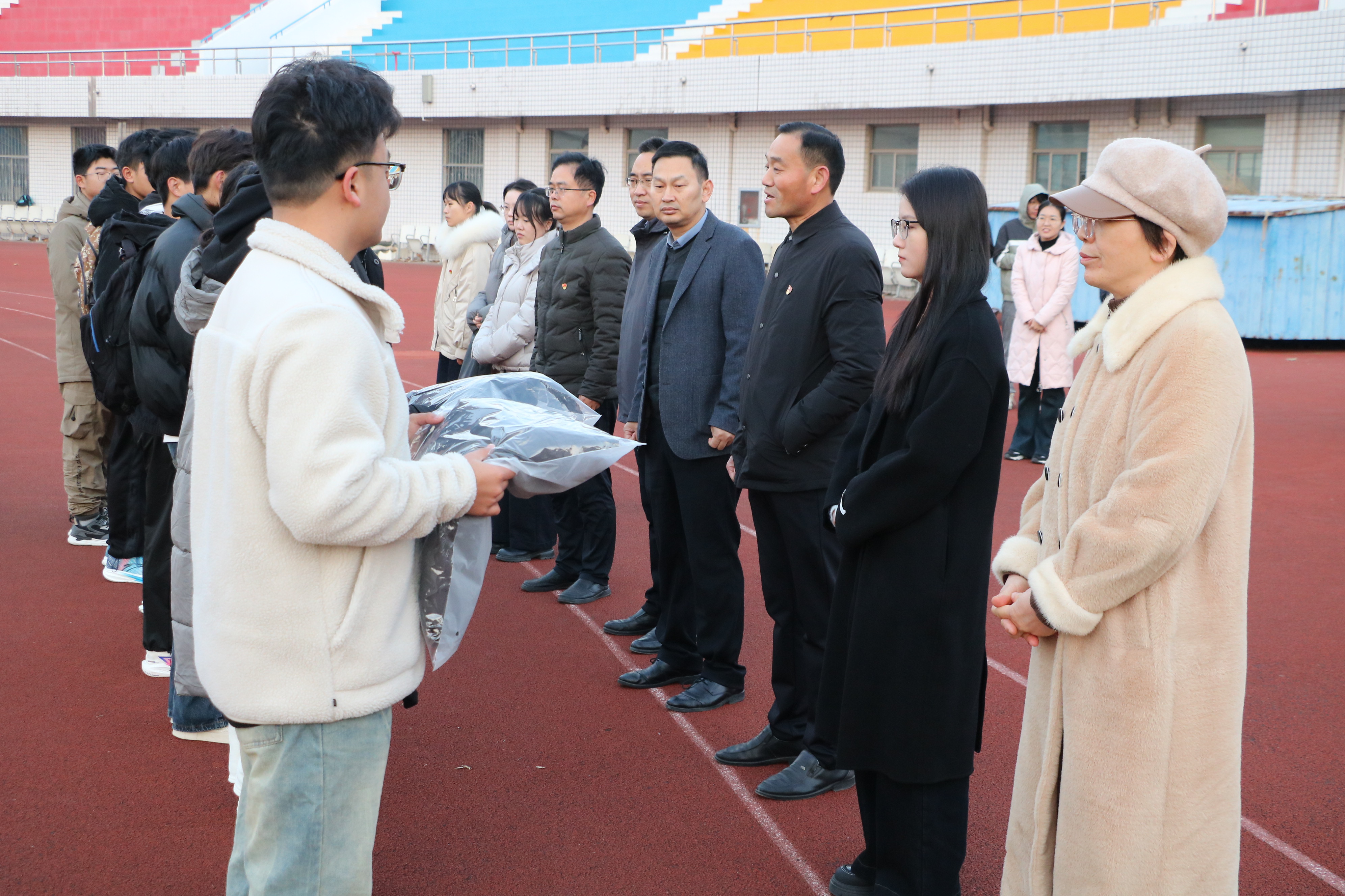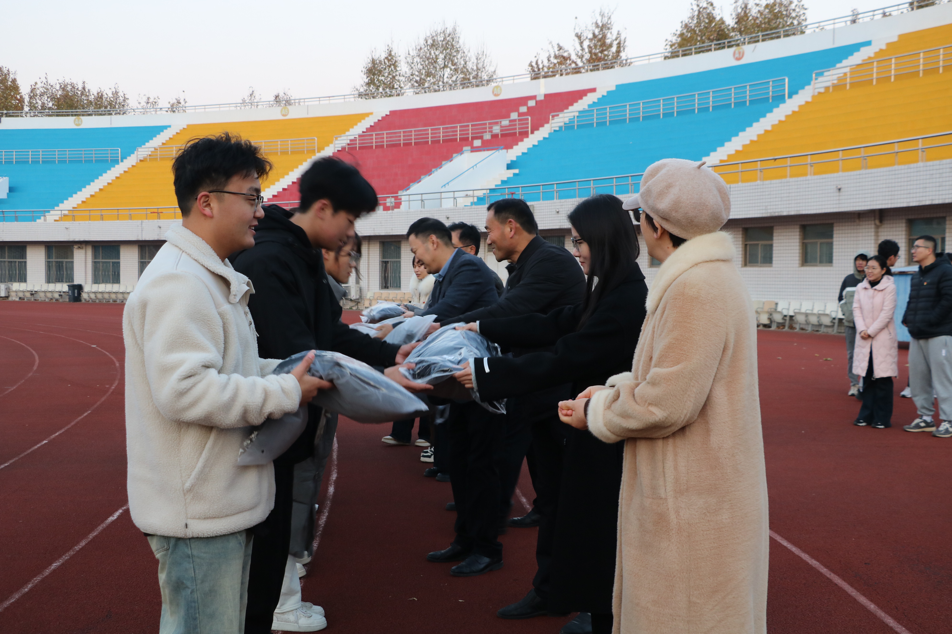 在仪式上,老师们有序地将一件件崭新的棉服发放到员工手中,领到棉服的员工脸上展现出幸福的笑容。公司始终秉持“以员工为本”的教育理念,连续多年为家庭经济困难员工发放越冬棉衣,不断完善“奖、助、贷、免、补、勤”等多元化员工资助体系,扎实推进员工资助各项工作高质量发展,帮助贫困员工温暖过冬。孟学超叮嘱同学们要用实际行动感恩国家与母校,努力提升自我,吃苦耐劳,克服困难,把个人的发展和祖国的发展、民族的复兴、社会的进步紧密结合起来,把个人命运与国家命运紧密联系在一起,自觉将个人“小我”融入国家“大我”,奋力书写为中国式现代化挺膺担当的青春篇章。