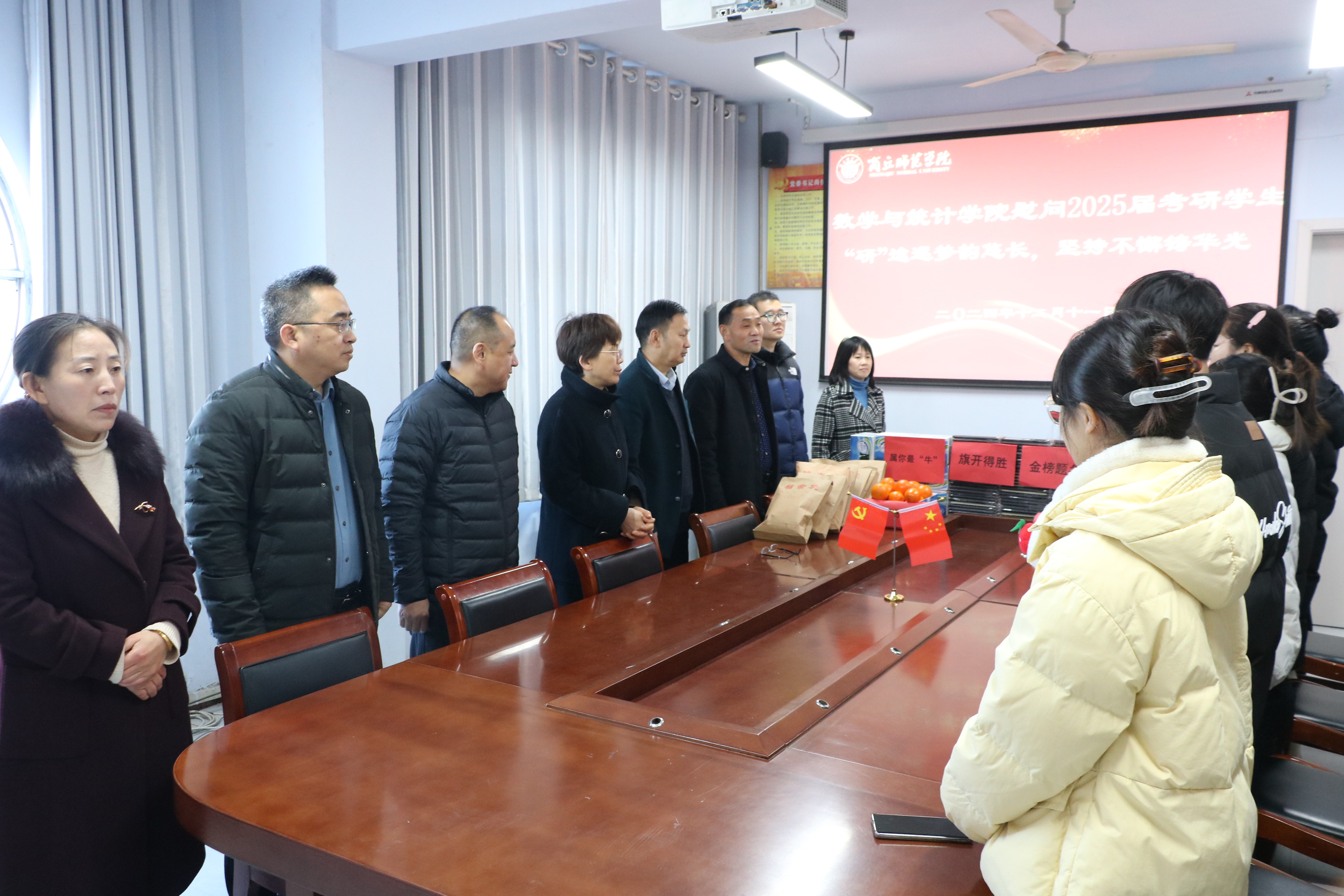 在2025年全国硕士研究生招生考试即将来临之际,为缓解考研员工备考压力,坚定考研信心,beats365中文官网于12月11日上午在办公楼204会议室举行了“‘研’途逐梦,砥砺前行”慰问2025届考研员工活动。公司领导班子、全体辅导员及2025届考研员工代表参加本次活动。