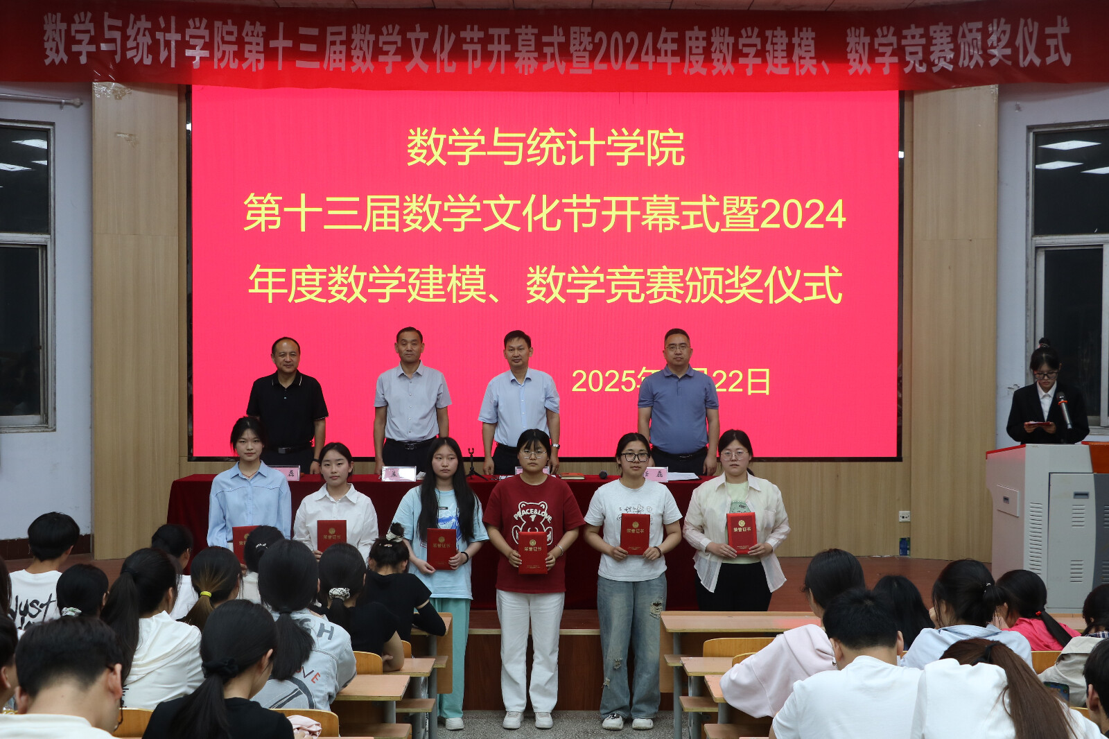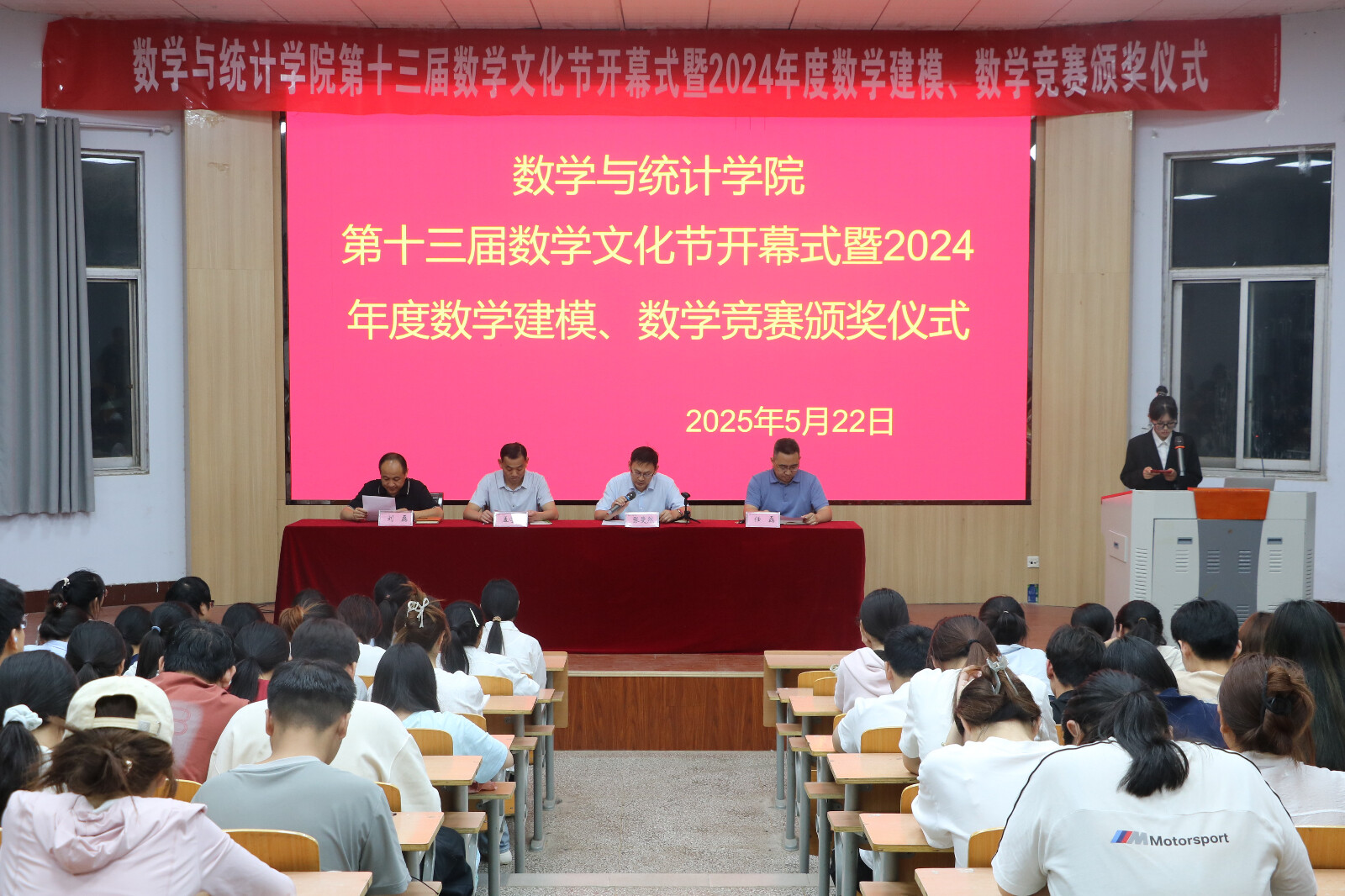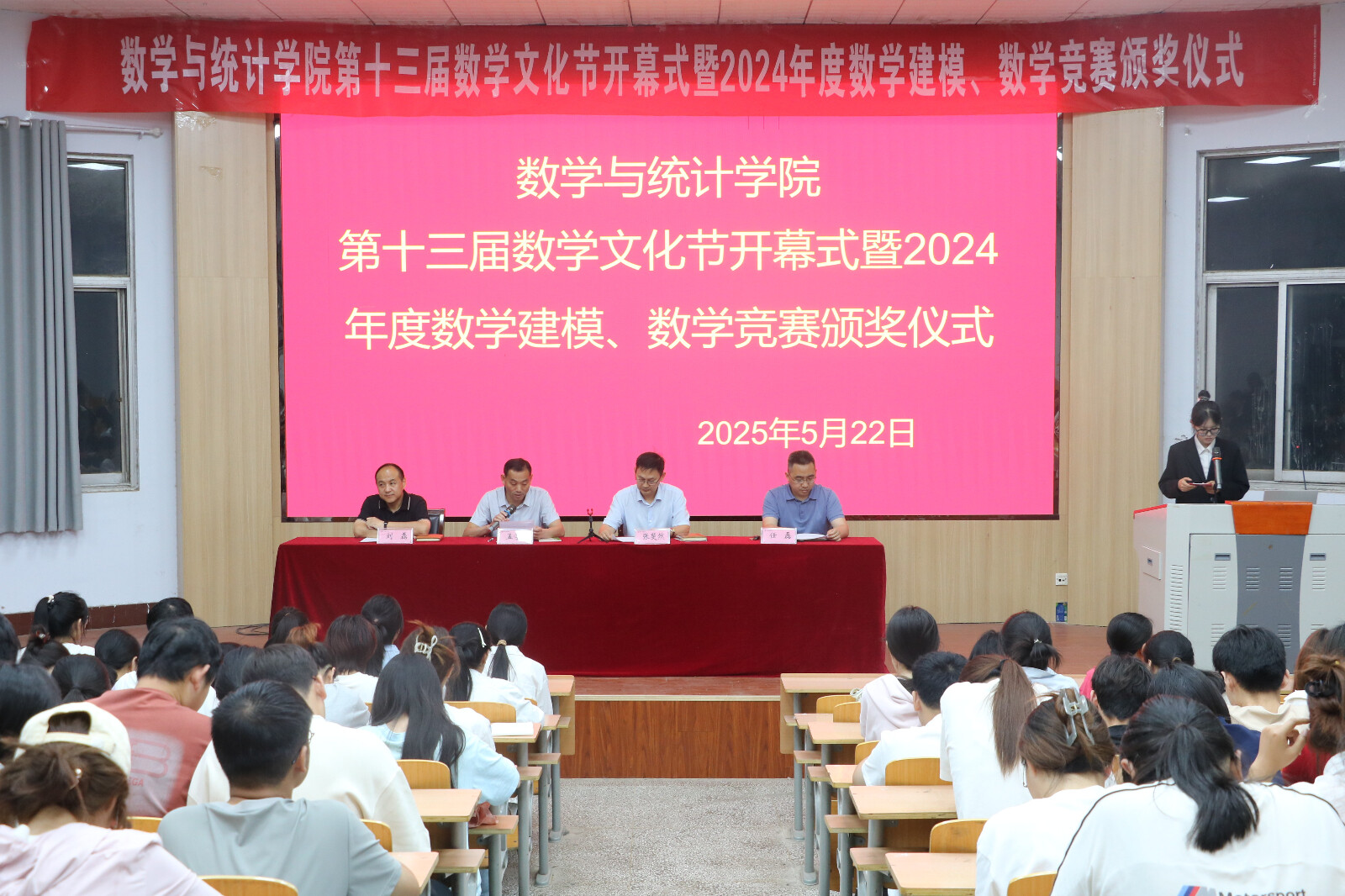 5月22日下午,beats365中文官网第十三届数学文化节开幕式暨2024年数学建模和数学竞赛表彰大会在睢阳校区物理报告厅举办。公司党委书记孟学超、经理张斐然、副经理刘磊、任磊及全体辅导员出席本次活动,获奖同学及22级、23级员工代表参加。