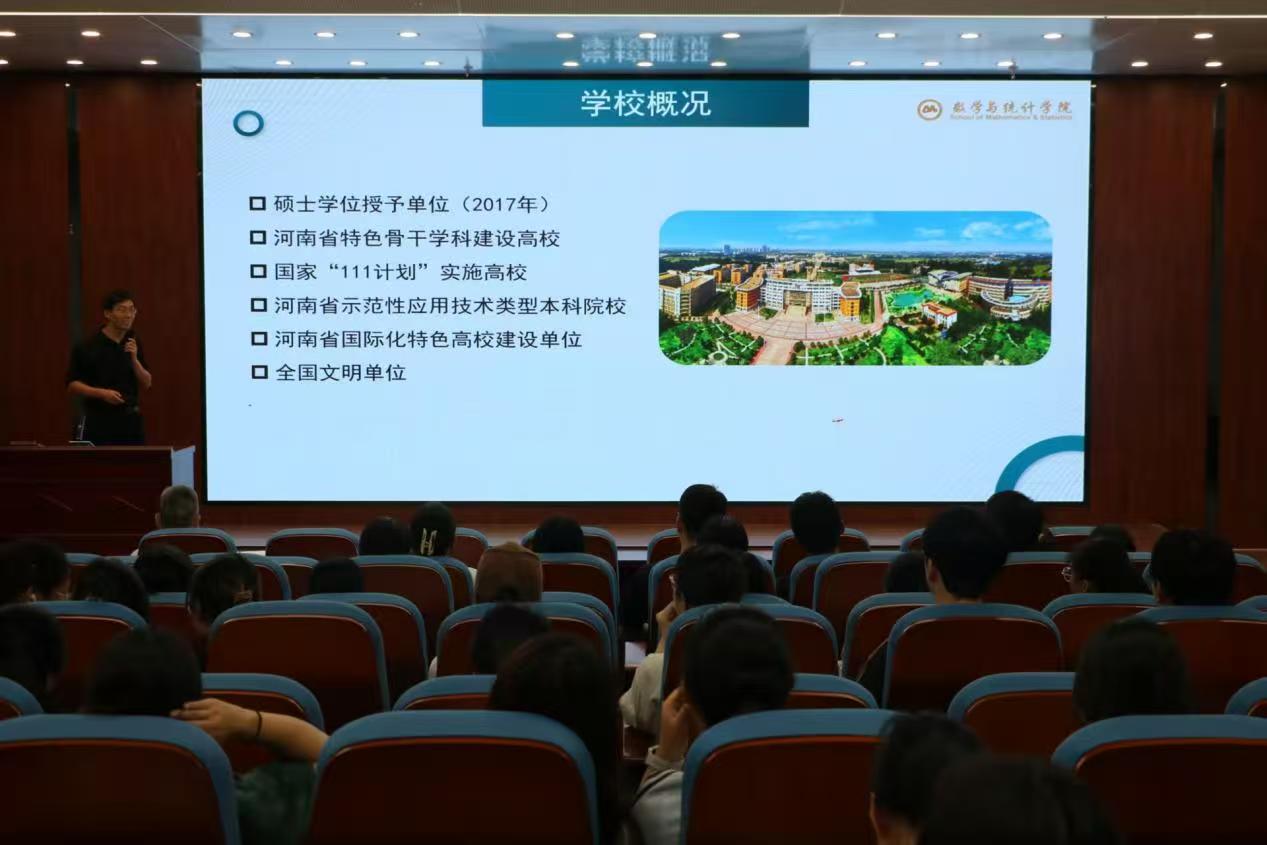 宣讲会现场,樊迎哲围绕南阳师范公司的公司概况、beats365中文官网学科优势展开介绍,从科研平台、硕士点建设、学科团队、高层次成果、人才培养等方面进行了细致且全面的剖析。樊迎哲结合历年考研数据,指导员工如何依据自身优势选报南阳师范公司beats365中文官网相关专业,并结合招生专业目录、招生参考书目和研究生奖助政策等方面对学科教学数学和统计学专业研究生工作进行了更加深入的介绍。互动环节,针对学子们关于招生细节、复习规划、未来就业等疑问,樊迎哲耐心答疑解惑,现场交流氛围热烈。