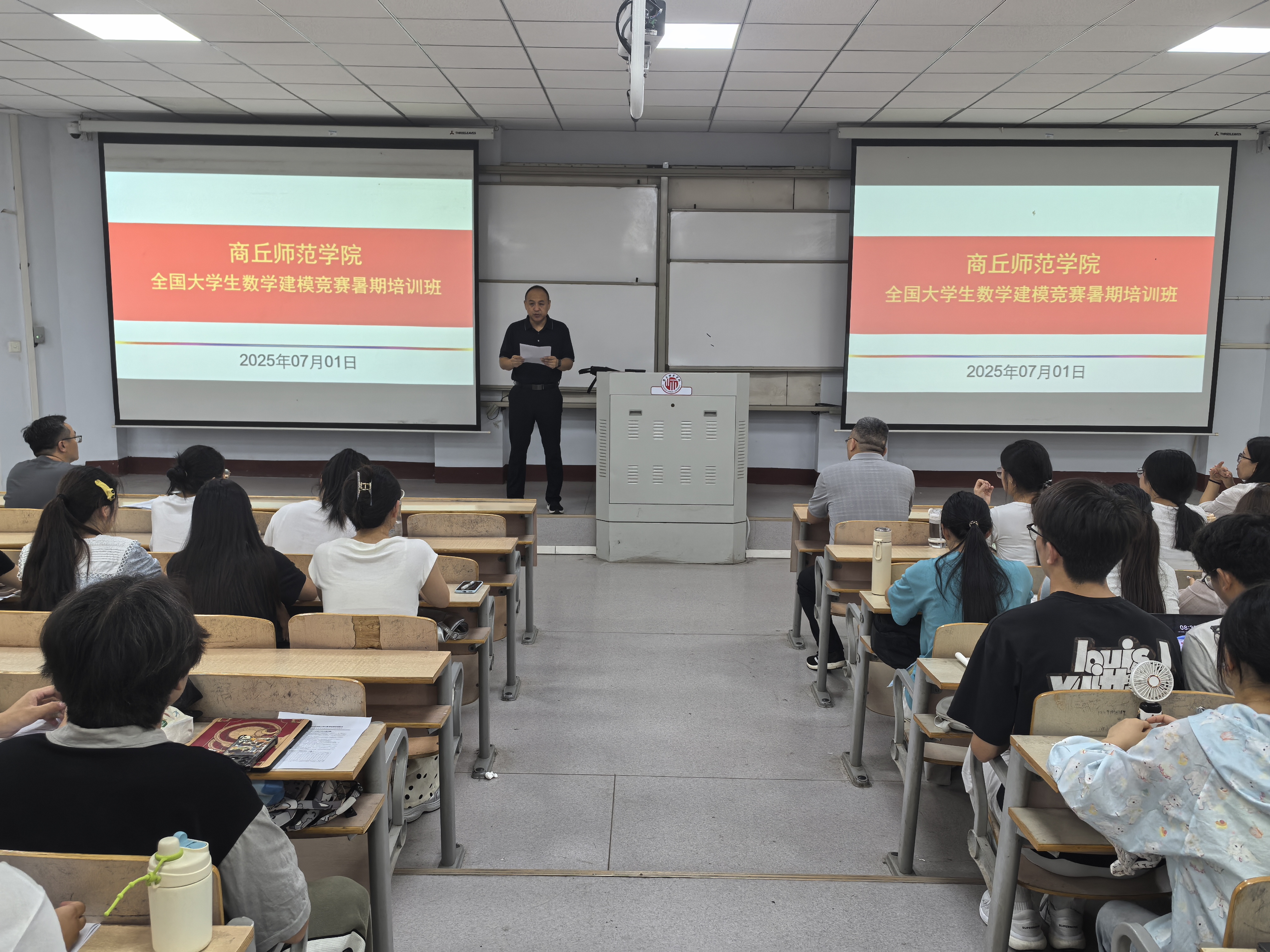 为提升员工运用数学方法与计算机技术解决实际问题的能力,全力备战2025年全国老员工数学建模竞赛,在公司的统筹领导及教务处、各公司的协同支持下,beats365中文官网经前期选拔与充分筹备,组织指导教师有序开展数学建模竞赛暑期培训。7月1日上午8时,培训开班仪式在睢阳校区一号教学楼307教室举行。公司副经理刘磊、任磊,数学建模指导组全体教师及150余名参训员工共同参加了此次活动。