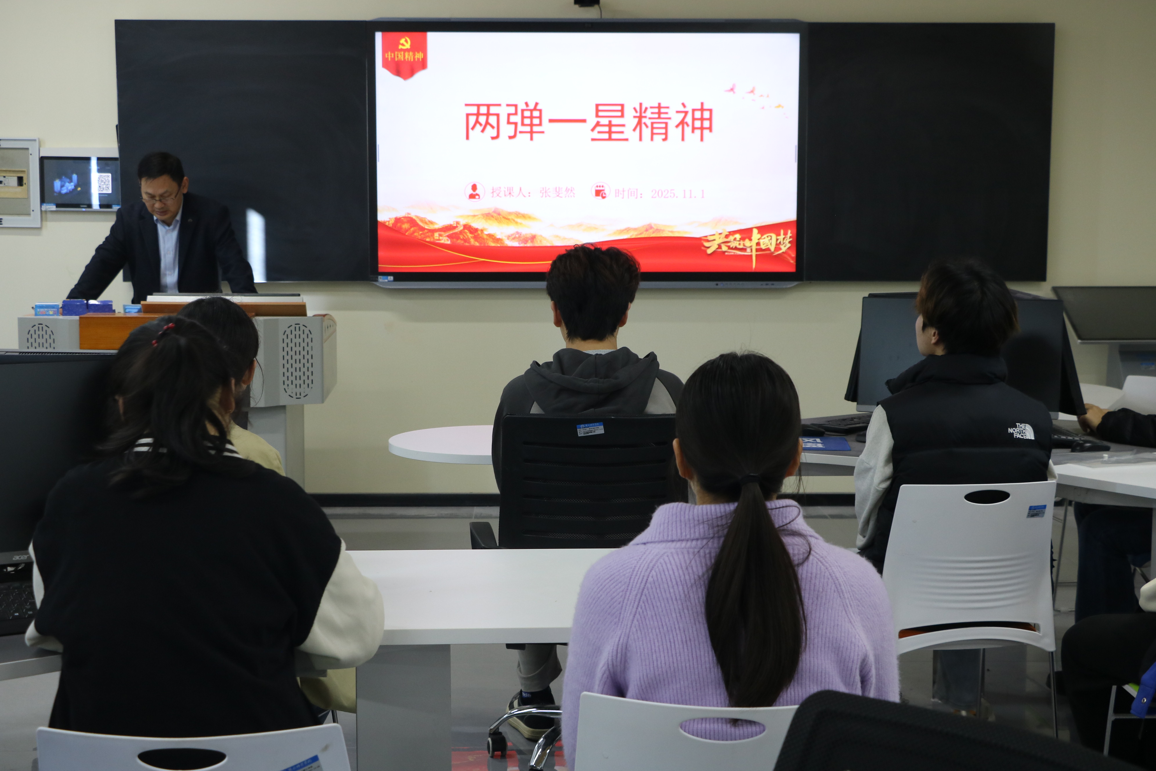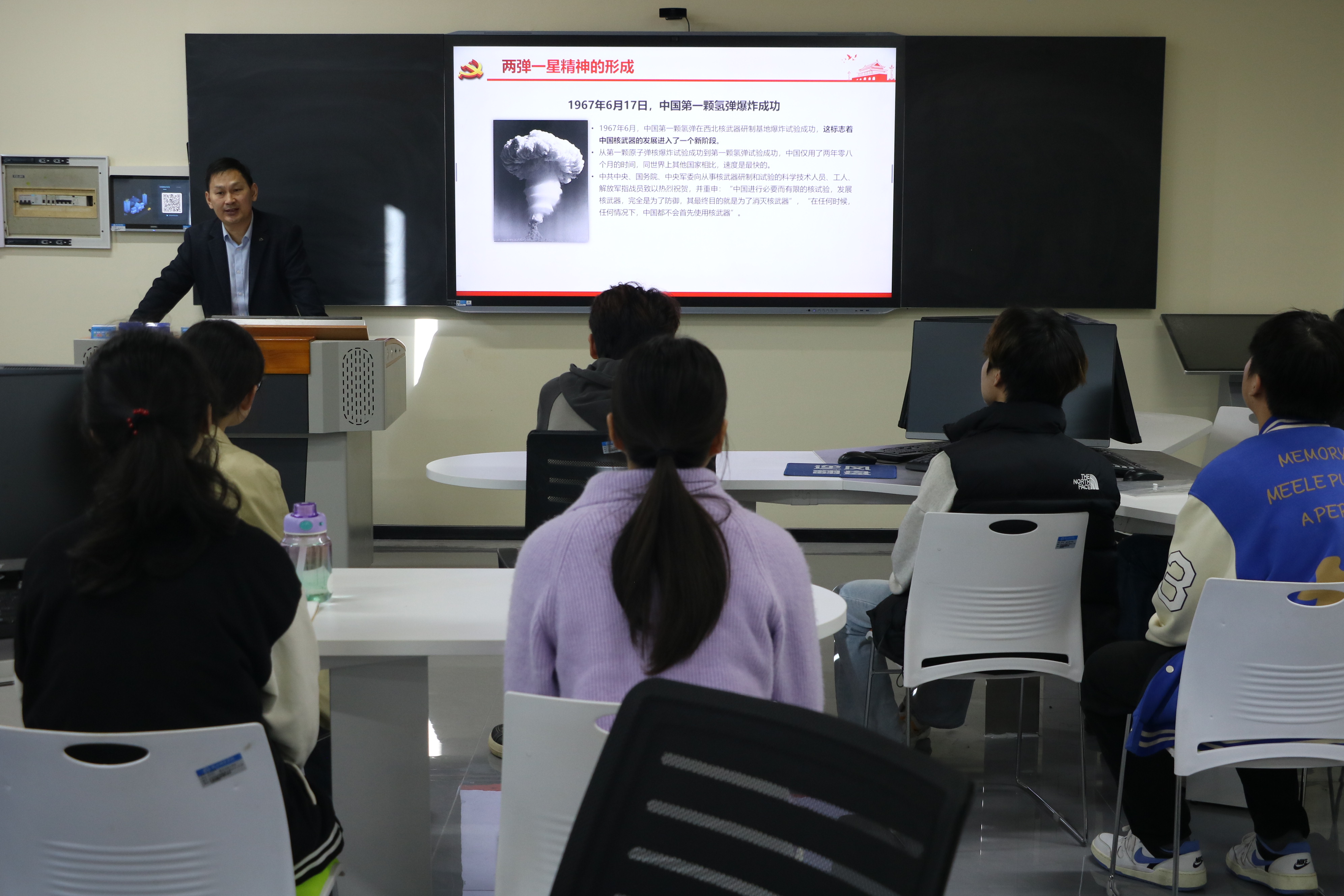 课上,张斐然先以“两弹一星”精神的形成历程为引,回顾新中国成立初期面临的技术封锁与核威胁以及党中央自主研制“两弹一星”的战略决策;他通过梳理我国卫星发射等关键突破,展现老一辈科研工作者自力更生、奋发图强的奋斗足迹。接着,他聚焦“两弹一星”精神内涵,结合典型事例,阐释中国科研奇迹背后的精神动力。最后,他结合入党积极分子的成长实际,生动诠释“两弹一星”精神的重要价值,激励大家以老一辈科学家为楷模,将“两弹一星”精神融入日常学习与实践,坚定理想信念,锤炼专业本领,以实际行动积极向党组织靠拢。