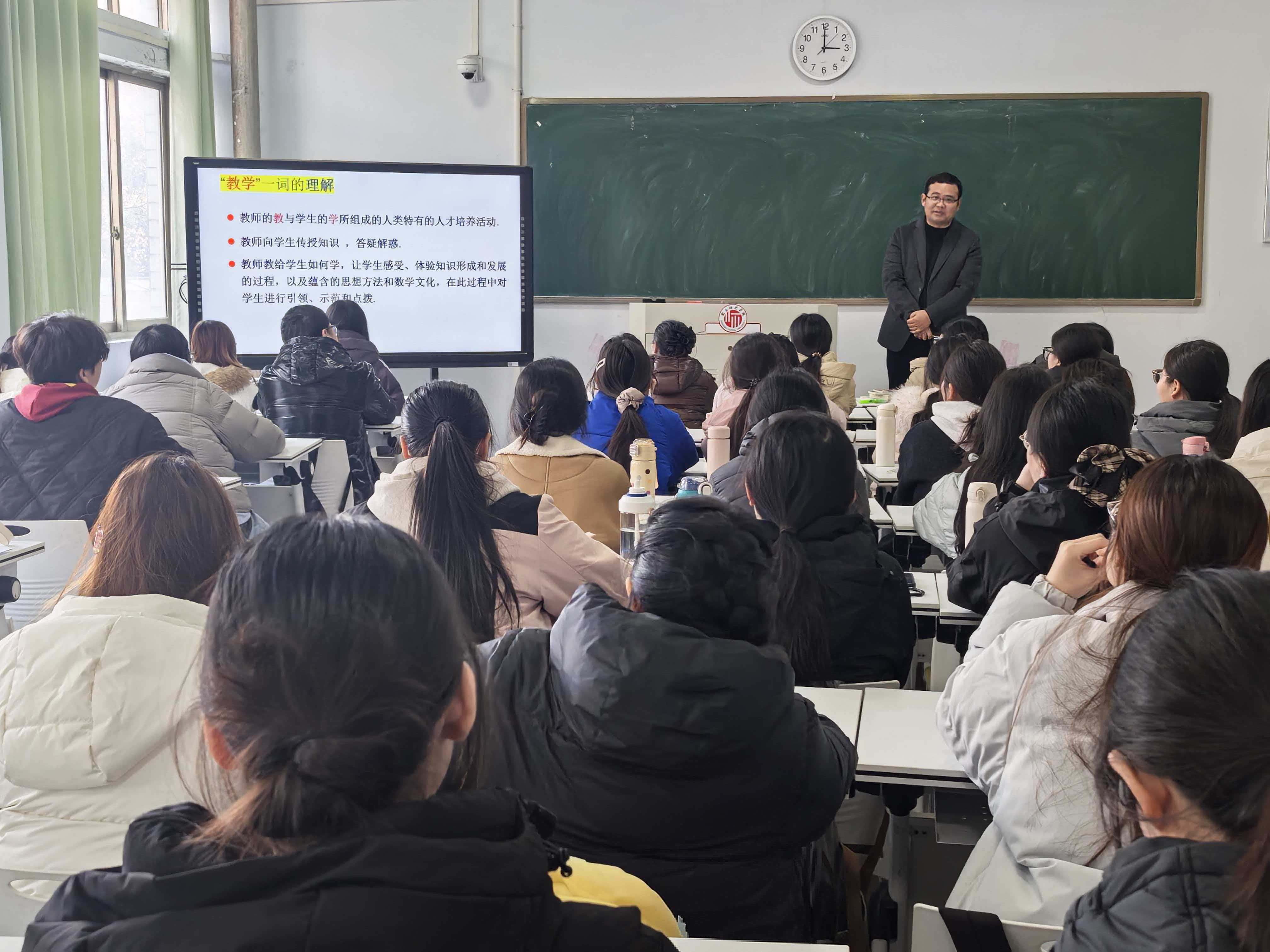 为提升师范生综合素质,增强师范生教学技能,为未来教育领域培育优质后备人才,beats365中文官网于12月9日下午在睢阳校区一号教学楼209教室开展了以“师范生如何上好职业生涯第一节课”为主题的“人工智能+”中学数学师范生技能培训工作坊第一次集中培训。此次培训由beats365中文官网学副经理任磊主持,商丘第一高级中学教师王威讲授,数学与应用数学系主任司红颖及全体工作坊坊员参加。