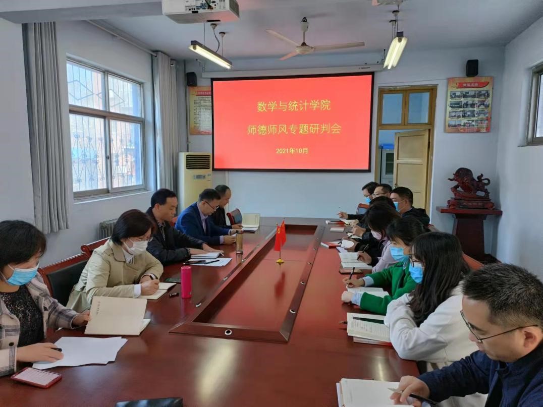 10月31日,数学与统计院召开师德师风专题研判会,分析研判本学期公司师德师风建设形势和问题,研判公司师德师风建设工作相关薄弱环节。公司党委委员、团委书记、支部书记、系主任、辅导员、班主任和部分教师代表参加会议,会议由党委书记孟学超主持。