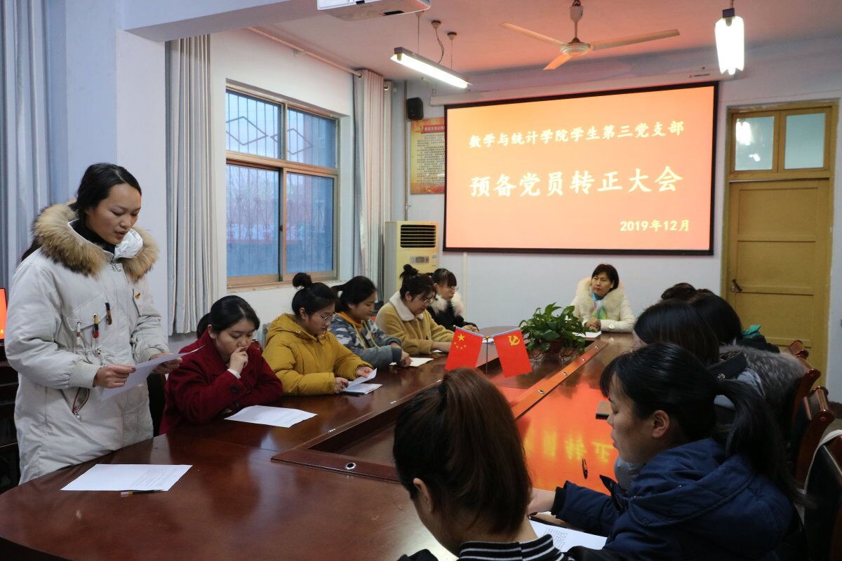会议起始,由张华老师先进行了会议人员清点,并宣读会议议程。接着申请转正的2名同志依次宣读自己的转正申请书,她们分别从思想认识、学习工作及个人生活方面汇报了自己在这一年预备期当中的表现,并表明自己的态度和决心。随后,由其入党介绍人对申请转正的同志在预备期内的表现做出评价,并表达了是否建议其转为正式党员。之后支部同志自由发言,表达意见或提出改进建议。经过支部成员投票决定,两名申请转正的同志均全票通过。最后,张华老师对新转正的党员提出新的要求,希望她们在今后的学习生活中严格遵守党的纪律,认真履行党的章程,提高党员意识和自身修养。