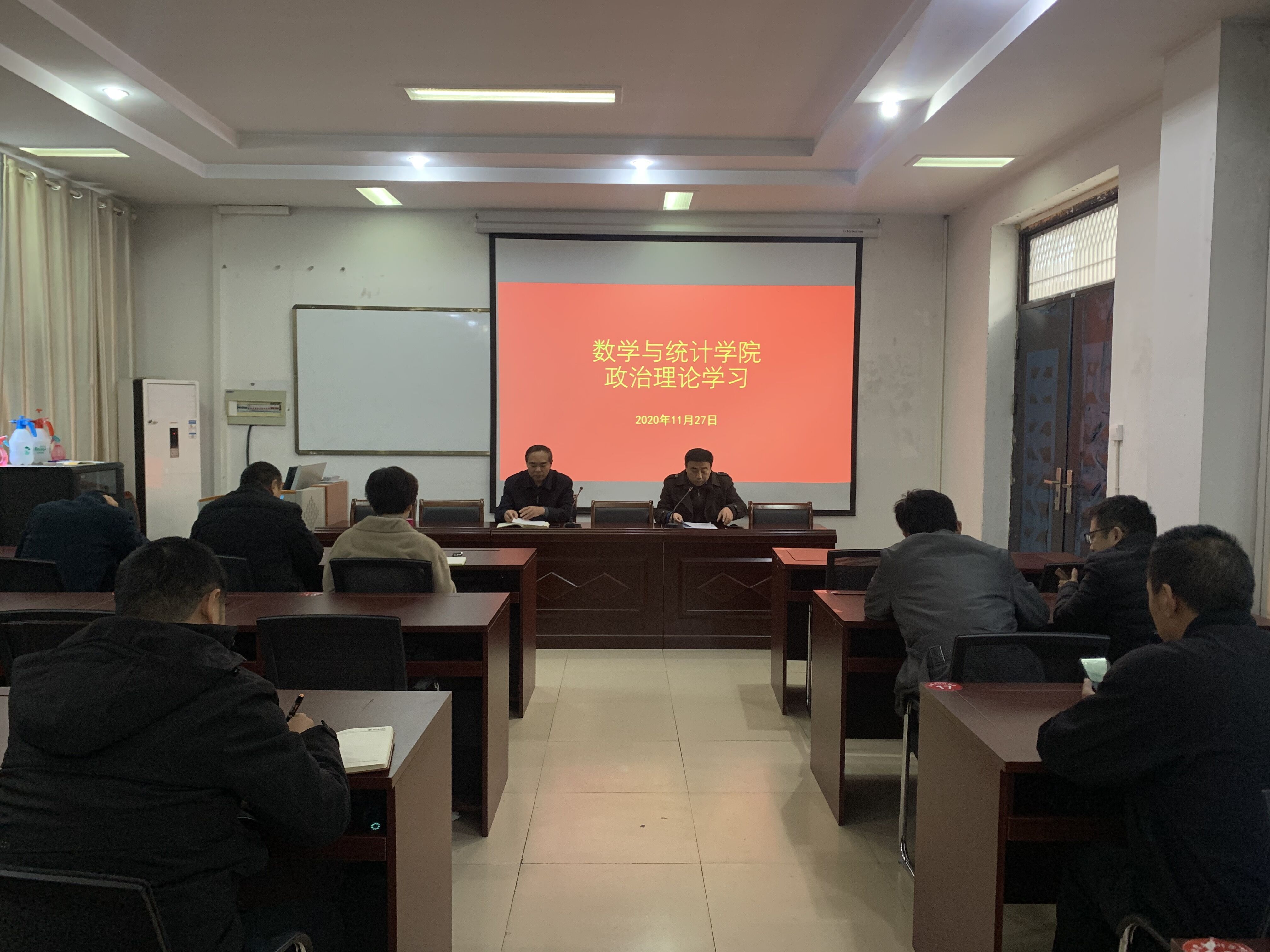 2020年11月27日下午,beats365中文官网在数学楼会议室召开政治理论学习会议,公司领导班子、全体教职工参加此次会议,会议由经理梁洪亮主持。