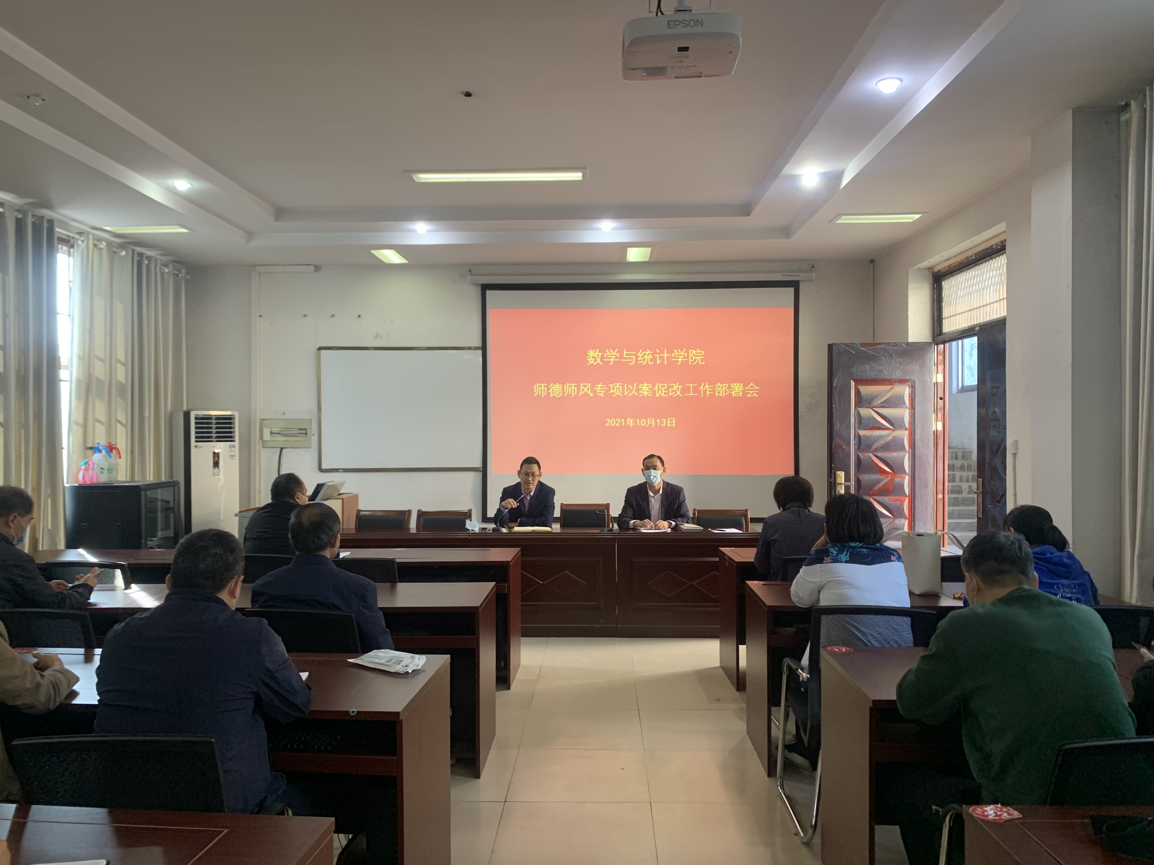 为全面加强师德师风建设,引导广大教师以德立身、以德立学、以德施教、以德立德,2021年10月13日,公司召开师德师风专项以案促改工作部署会,公司领导班子、全体教职工在数学楼二楼会议室参加了此次会议,会议由经理张斐然主持。