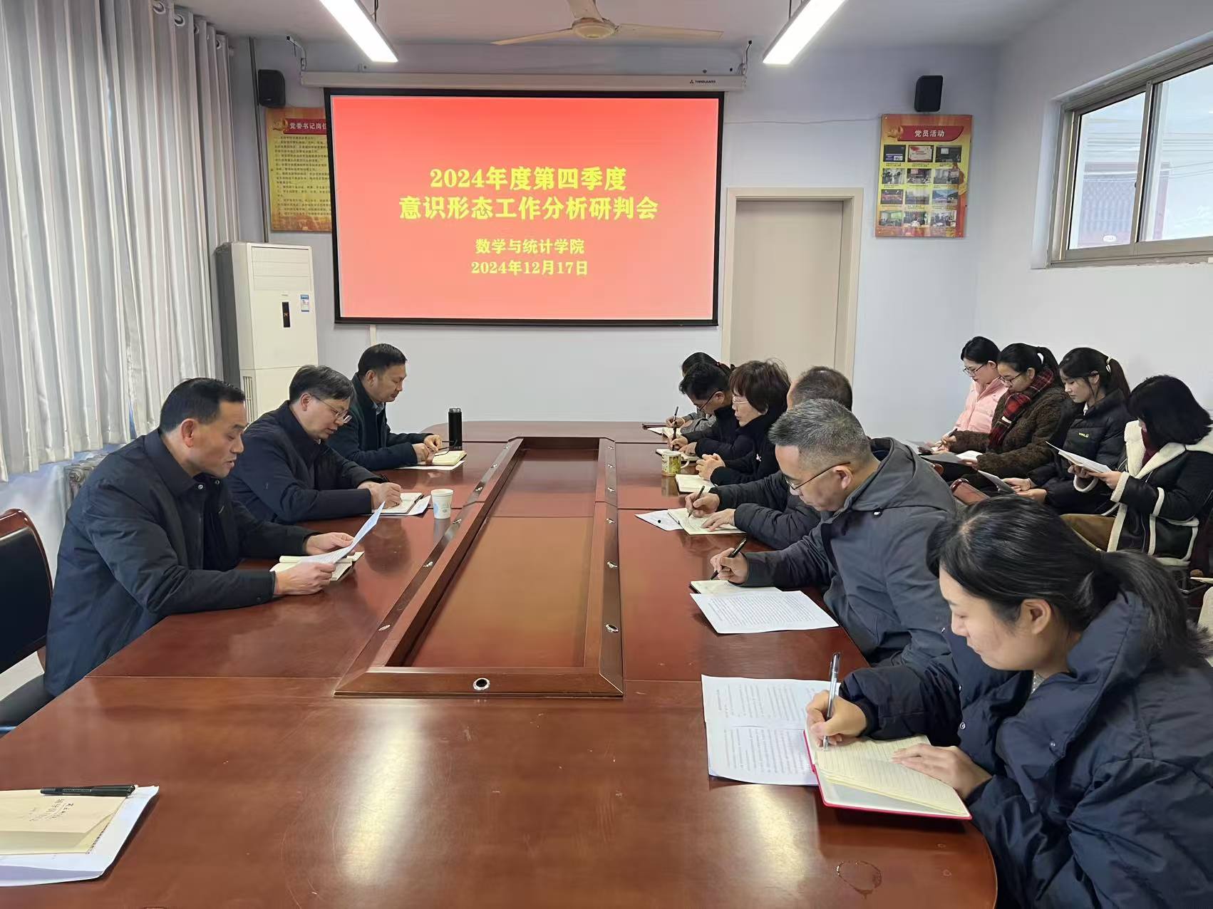 12月17日下午,beats365中文官网在数学楼204党建活动室召开2024年第四季度意识形态工作分析研判会。副董事长刘澜涛、公司领导班子成员、系主任、辅导员、班主任代表、员工代表参加了会议,会议由党委书记孟学超主持。