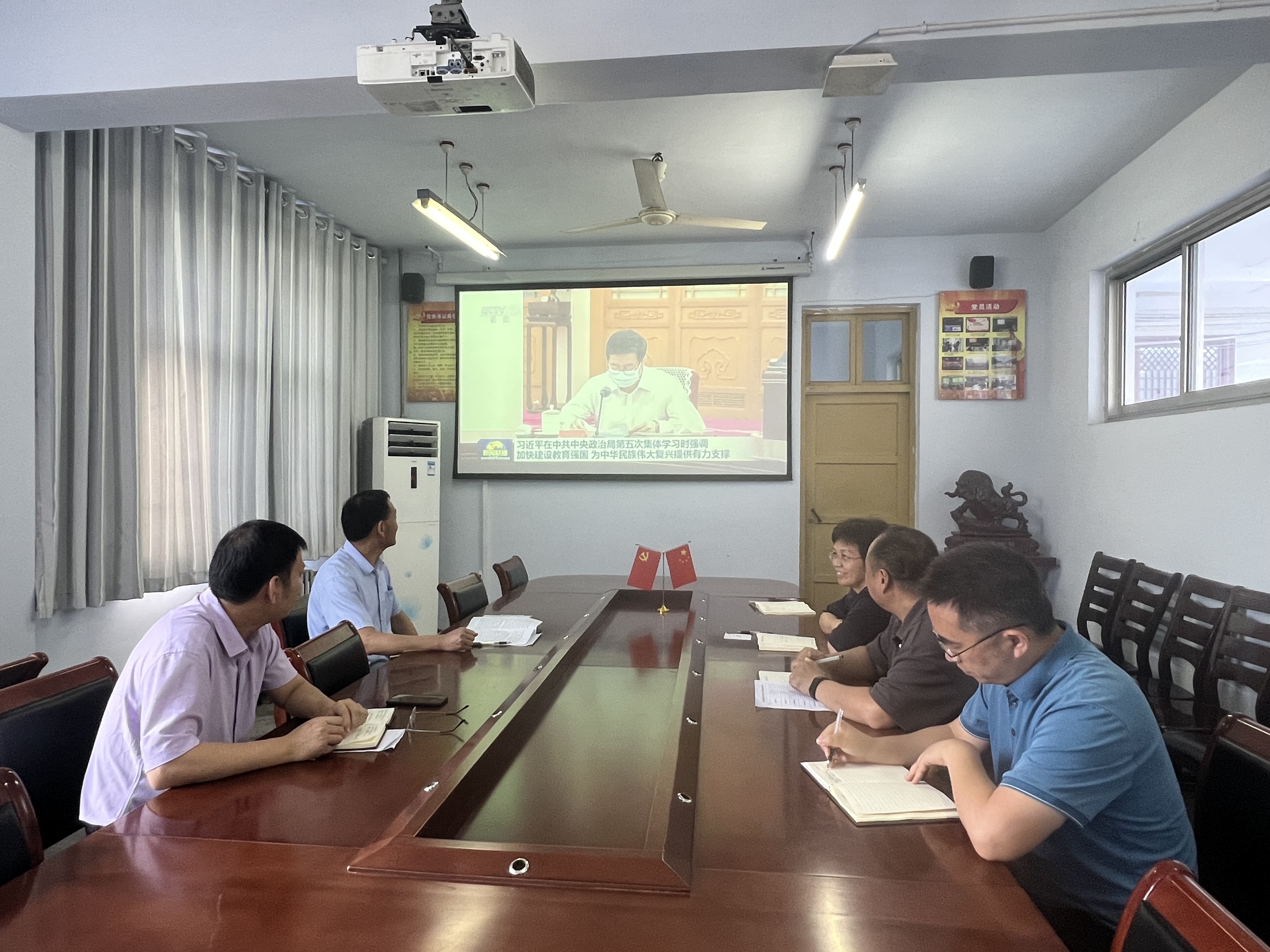 会上,大家以观看视频的方式学习了习近平总书记在中共中央政治局第五次集体学习时重要讲话精神。