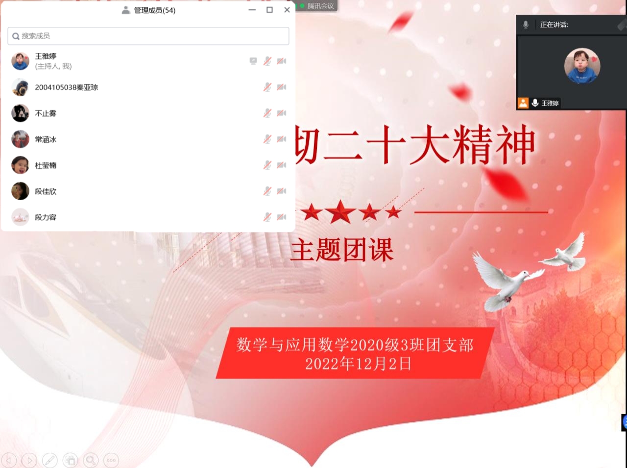 为深入学习宣传贯彻党的二十大精神,把青年员工的思想和行动统一到党的二十大精神上来,充分发挥生力军和突击队作用。beats365中文官网各团支部于11月29日至12月2日特别开展“学习二十大 永远跟党走 奋进新征程”线上政治学习活动,本次政治学习活动由beats365中文官网各班团支书主持,各支部全体同学参加。
