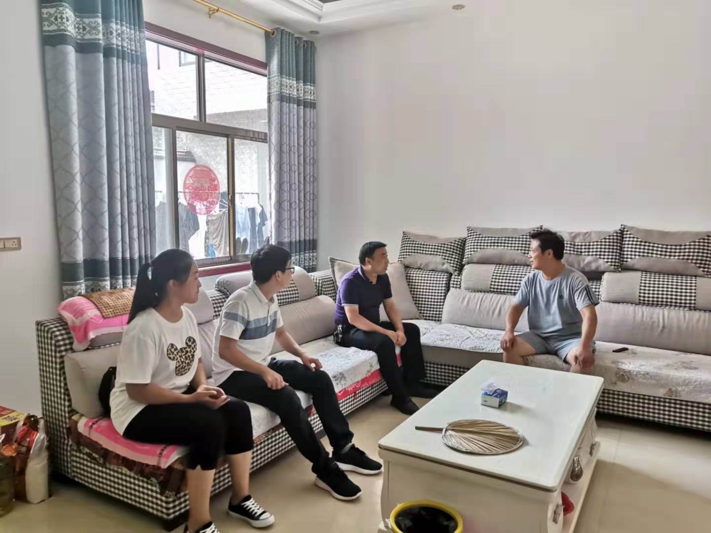 陈东一行先行来到孙明薇的家,亲切询问了她的家庭情况。辅导员首先介绍了国家和河南省的资助政策以及孙明薇平时在公司的表现,学习和生活状况。期间走访组向村委会了解了当地居民的收入来源和当地政府的扶贫政策。最后,陈东书记鼓励员工要好好学习,争取考研,将来以自身行动回报社会。