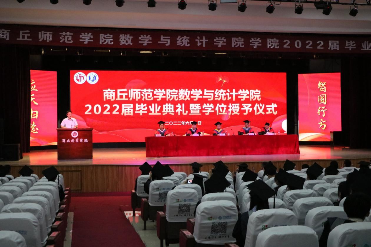 初夏时节,骊歌奏响。6月1日上午,数学与统计公司在睢阳校区大礼堂隆重举行2022届毕业典礼暨学位授予仪式,副董事长徐茂田出席,公司领导班子成员、全体辅导员、毕业班班主任、教师代表、及2022届在校生参加,公司党委副书记陈树艳主持毕业典礼暨学位授予仪式。