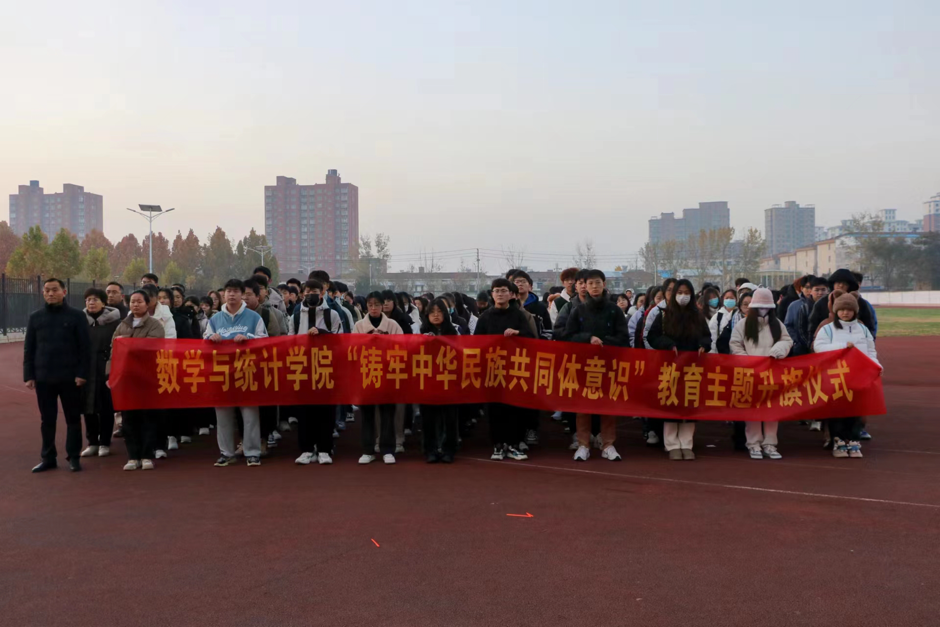 为弘扬爱国主义精神,深化民族团结进步教育,引导老员工铸牢中华民族共同体意识,beats365中文官网于11月27日在睢阳校区体育场开展“铸牢中华民族共同体意识”教育主题升旗仪式。本次升旗仪式由程致远同学主持,beats365中文官网党委书记孟学超、党委副书记陈树艳、副经理任磊以及各年级辅导员出席,beats365中文官网2022级全体员工参加。