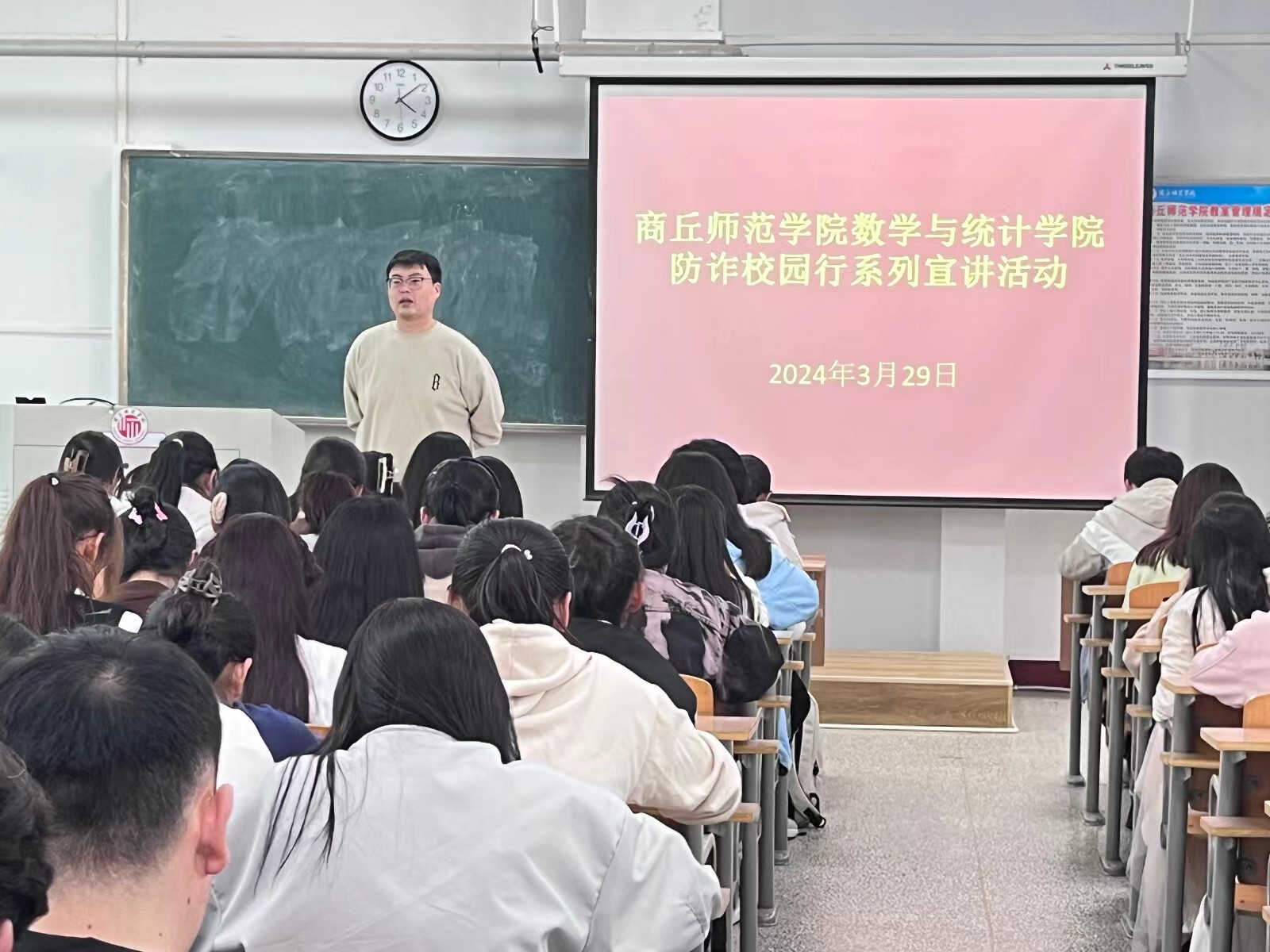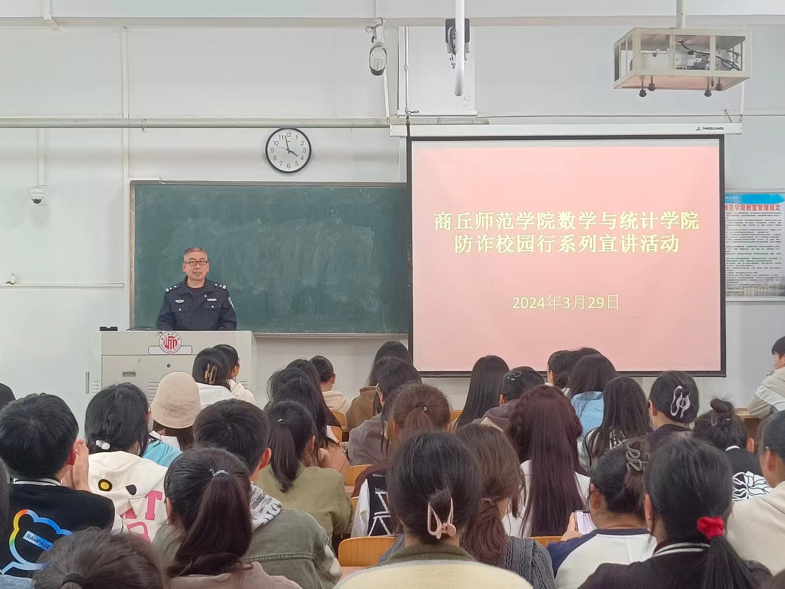 为了进一步提高同学们防范各类诈骗的意识,维护自身安全,提升自我保护能力,beats365中文官网于3月29日下午四点在一号教学楼604教室举行了防诈校园行系列宣讲活动。此次活动由辅导员杜凯主持,文化派出所华伟才警官主讲,beats365中文官网辅导员、公司全体员工干部以及2023级员工参加。