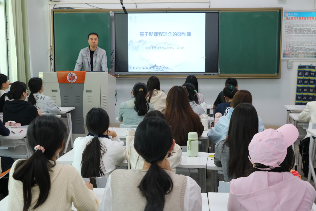 为进一步提升师范生教学能力,从整体上拔高师范生专业素养。beats365中文官网于2025年4月15日下午两点在睢阳校区1号教学楼406教室顺利开展了以“基于新课程理念的微型课”为主题的“互联网+”中学数学师范生技能培训工作坊第二次集中培训。本次培训商丘市基础教育发展中心范兴达老师主讲,数学与应用数学系主任司红颖和2022级40名坊员参加。